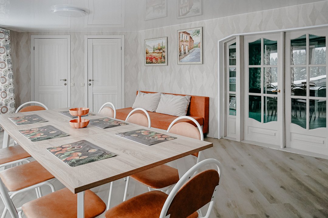 Из окон дома открываются захватывающие виды на покрытые елями горы и спокойное озеро. Рядом протекает чистая река Нязя, что позволяет гостям насладиться природной красотой и тишиной, вдали от городской суеты. Городская инфраструктура находится рядом: напротив дома расположена спортшкола с прокатом лыж и сноутюбингом в зимний период, а в центре города есть два парка и современная набережная для прогулок. Дом окружен зеленью, имеется парковка, а гостеприимные хозяева создают атмосферу уюта и заботы, уделяя внимание каждой детали.