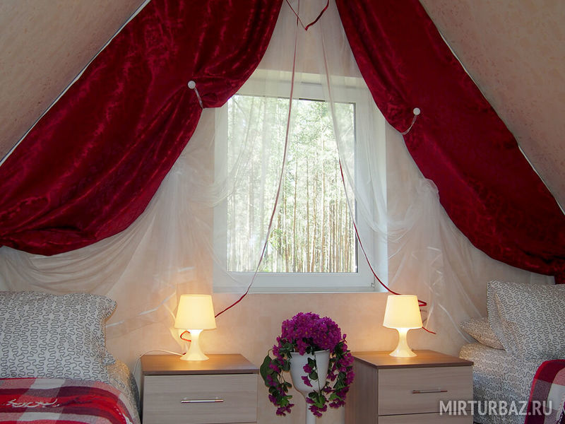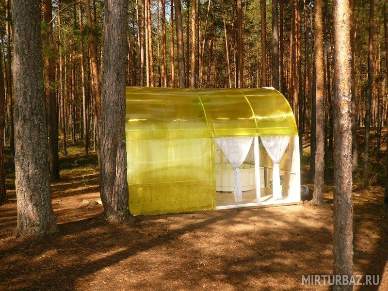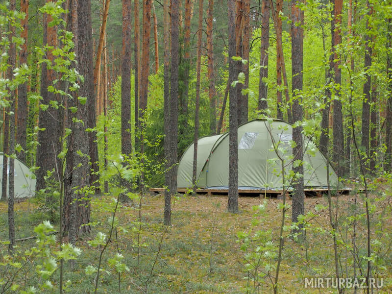 Для ценителей экологического отдыха на базе есть расположенные в укромном месте кемпинговые палатки. Хорошо, лёжа в уютной постели, наблюдать за игрой пробивающихся сквозь хвою солнечных зайчиков, слушать шум ветра в соснах, пение птиц или шорох теплого дождя по тенту.