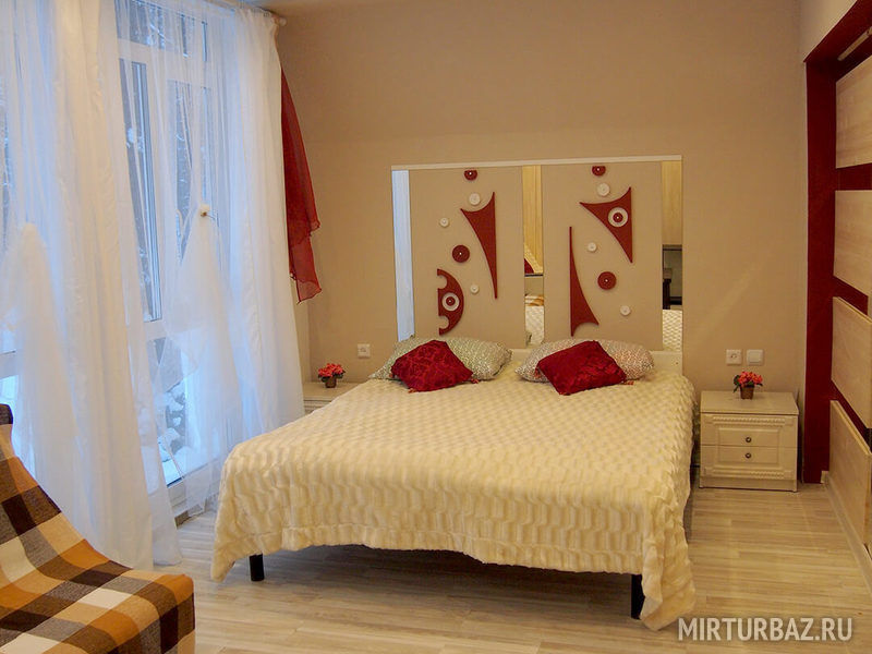 - 2 места с возможностью размещения до 4 человек (2 места дополнительно) – 1 двуспальная кровать + 2 односпальныe кровати (добавочно).
