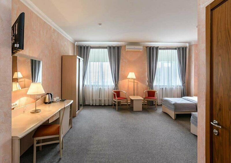 К услугам гостей отеля предлагаются различные категории номеров, оборудованные всем необходимым для отдыха. Работает кафе-бар с с блюдами русской, европейской и восточной кухни.Предусмотрена бесплатная охраняемая парковка на период проживания.