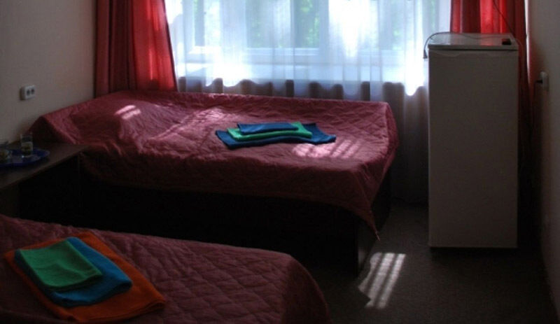 Столик, стулья • Шкаф • Раздельные кровати • Удобства в номере. Номер оборудован полуторными кроватями, столиком со стульями и зеркалом. В коридоре шкаф, холодильник и санузел с душем.