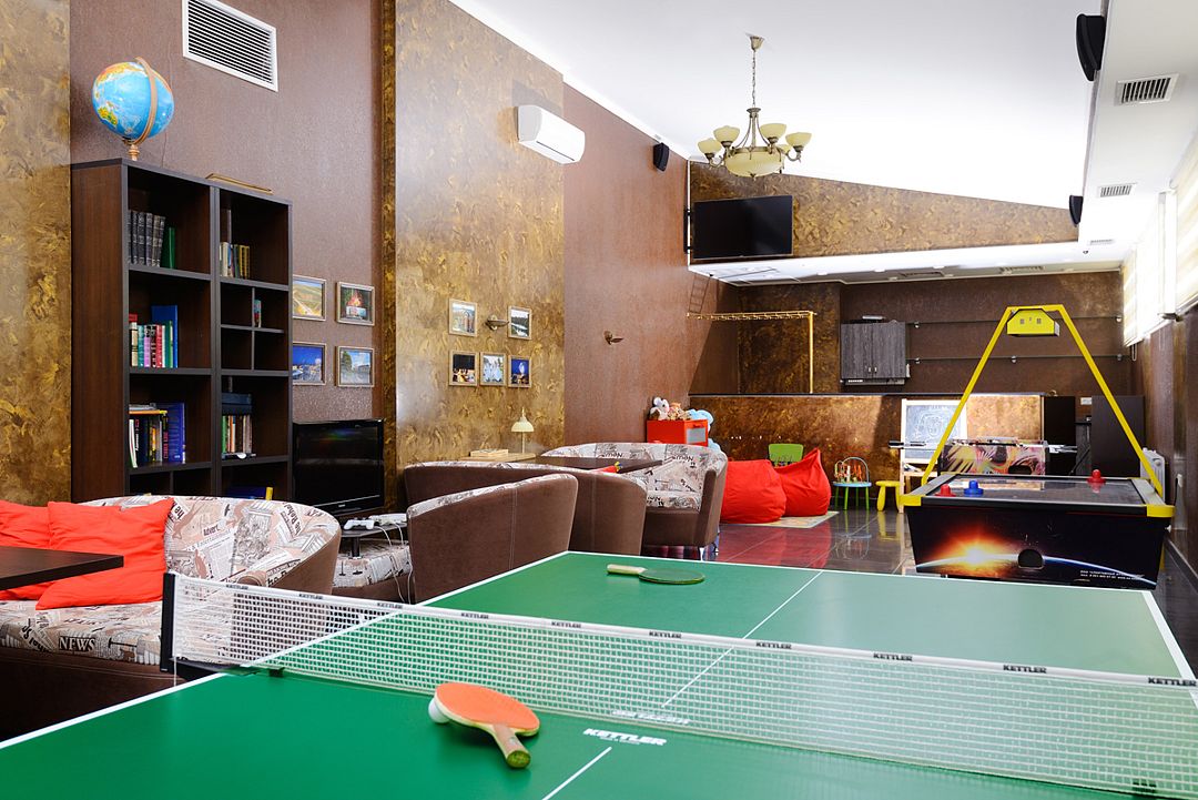 Игровая зона отеля «Империал» представляет собой изысканное пространство, где каждый может обрести покой после трудовых будней. Здесь гости могут предаться увлекательной игре в бильярд, настольный теннис или аэрохоккей, а также насладиться чтением в уютной обстановке.