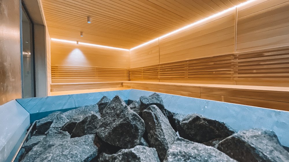 Большая финская сауна с сухим горячим воздухом.