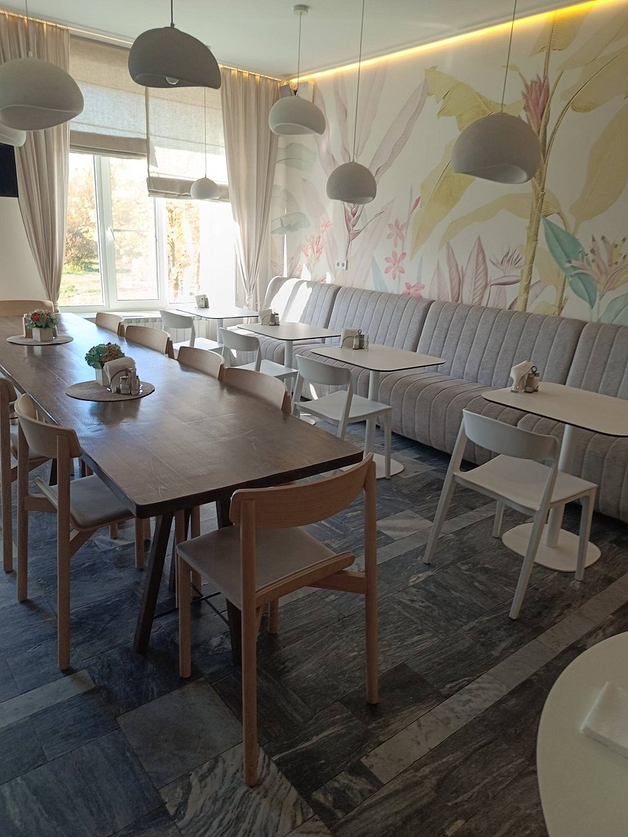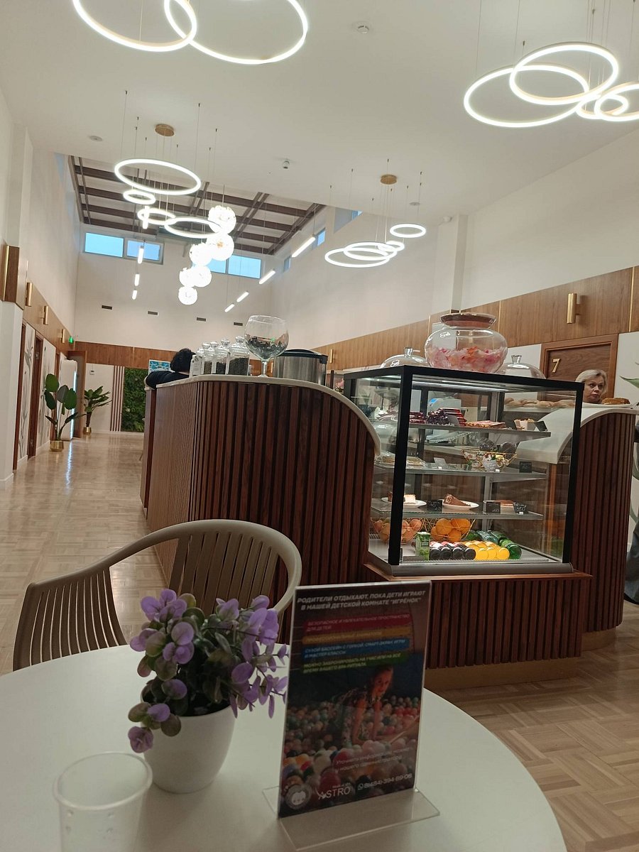 Для всех желающих поесть в любое время с 8:00 до 20:00 у нас работает красивое кафе с авторской кухней «Розмарин» и СПА-бар в СПА-комплексе.
