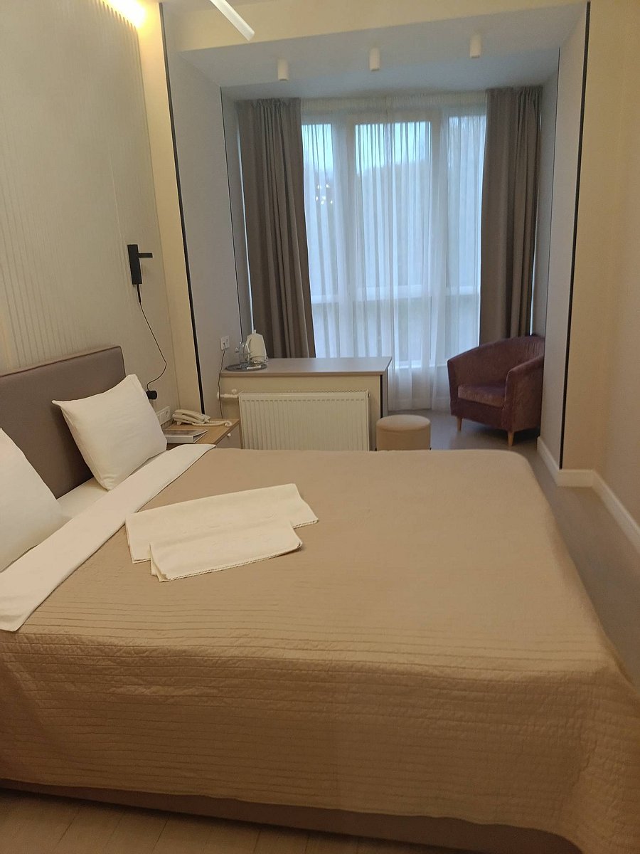 Двухместный номер с одной большой кроватью. После дизайнерского ремонта.