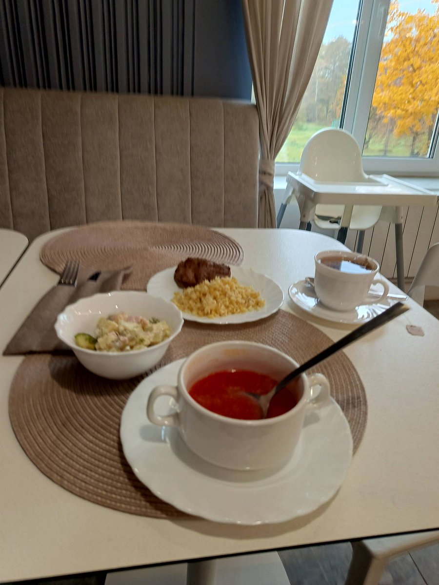 Еда разнообразная, вкусная, поварам большое спасибо, булочки и выпечка бомбическая, как из детства)