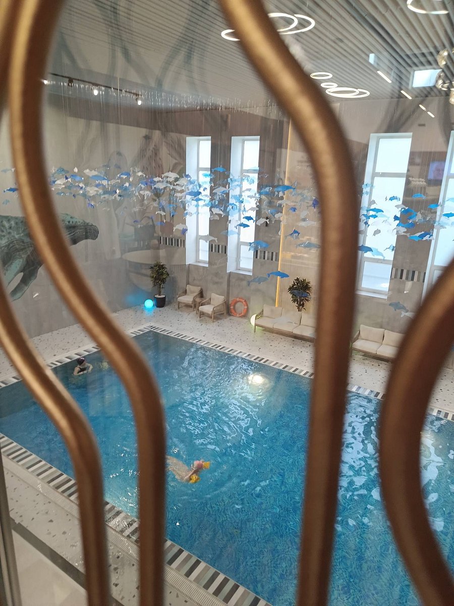 И самый кайф, в санатории шикарный СПА-комплекс, великолепный бассейн, термозона, делала массаж и аппаратный, и ручной. На ручной до сих пор хожу курсом. Детей не вытащить было из бассейна, а какой там красивый огромный кит – мозаика на стене. А еще как раз перед нашим заездом заработала детская комната, просто спасение для нас, пока дети там развлекались мы посещали СПА.