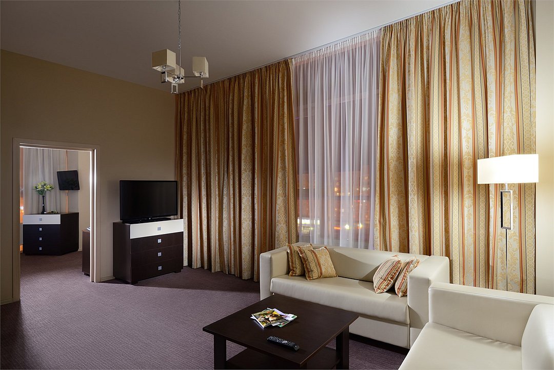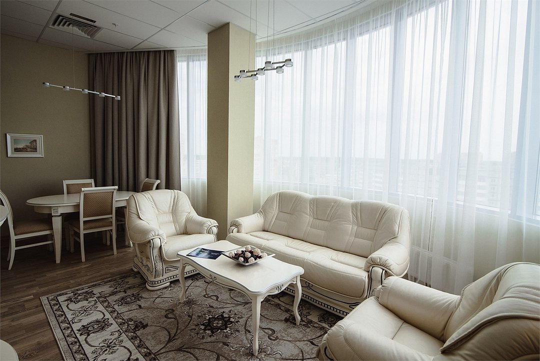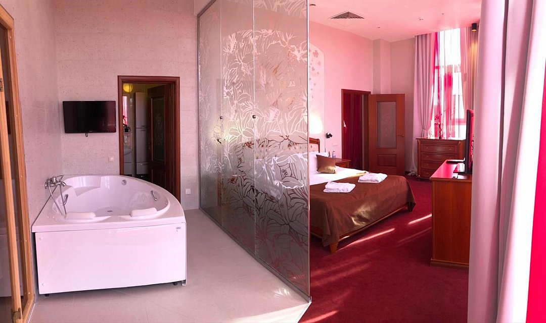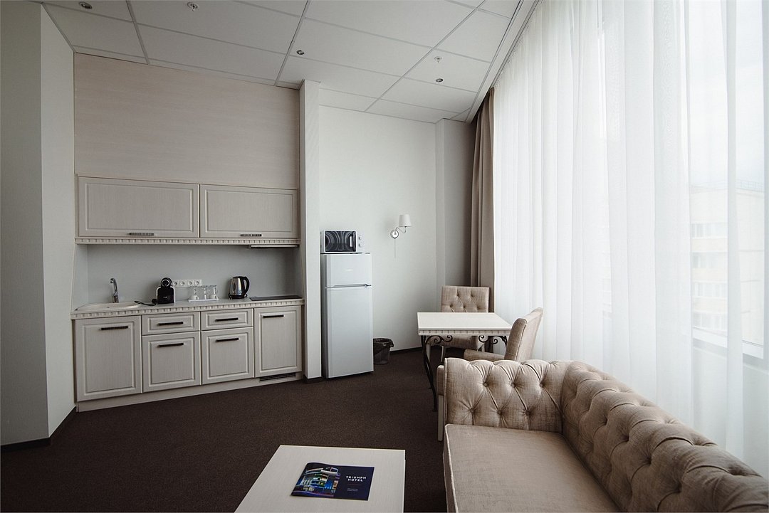 Подъезд к корпусу 4* находится со стороны проспекта Маркса. Апартаменты Люкс - это новый номер самой высокой категории в Триумф Отеле. Самый большой по площади номер в отеле состоящий из двух комнат, пространства для тренировки с велотренажером, оснащенный двумя санузлами, душевой кабиной, ванной и сауной. В стоимость включены услуги фитнес-центра С.С.С.Р. (тренажёрный зал, бассейн, соляная комната, банный комплекс) - ТОЛЬКО ПРИ БРОНИРОВАНИИ С САЙТА ОТЕЛЯ.Услуги и удобства