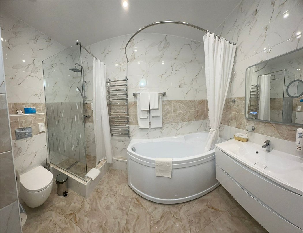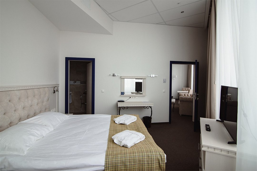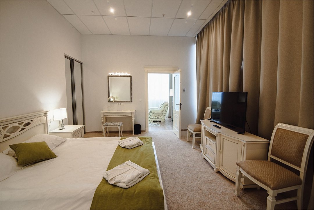 два телевизора, Wi-Fi, интернет, телефон, душевая кабина, санузел, дополнительный санузел, халаты, тапочки, двуспальная кровать, две комнаты, письменные принадлежностиВ гостиничном номере