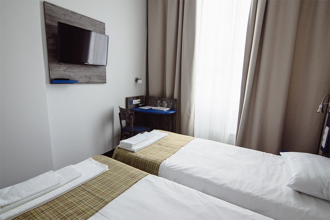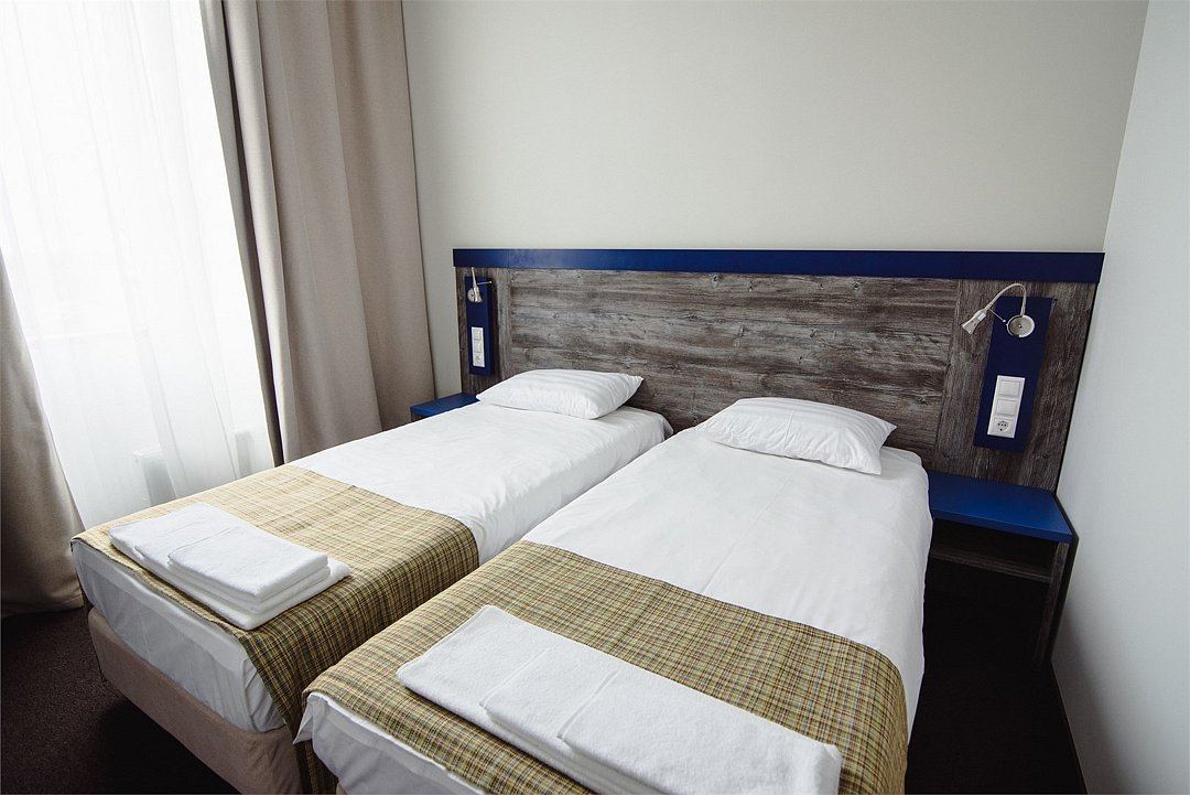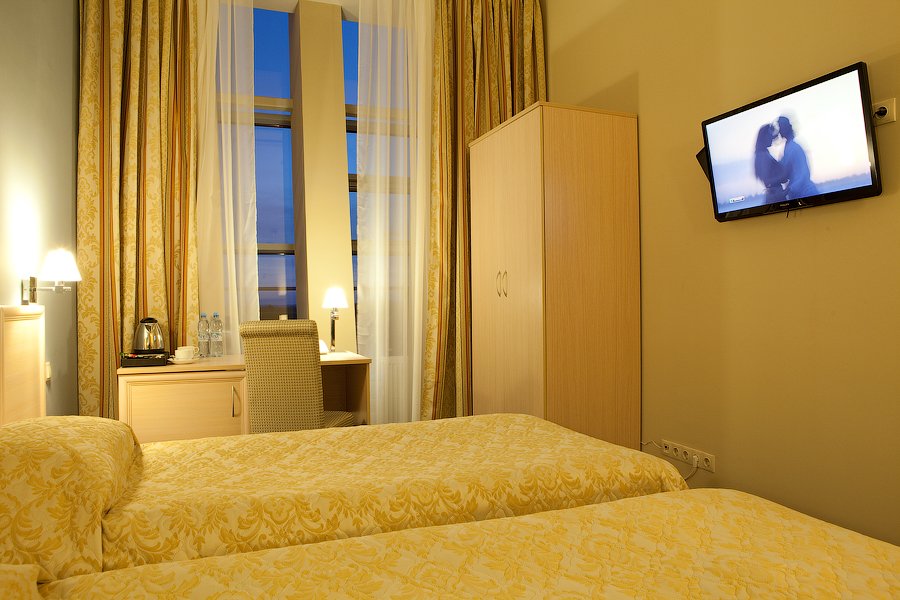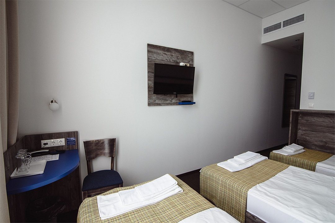 телевизор, Wi-Fi, телефон, электронные замки, две односпальные кровати, душ, кулер на этажеВ гостиничном номере