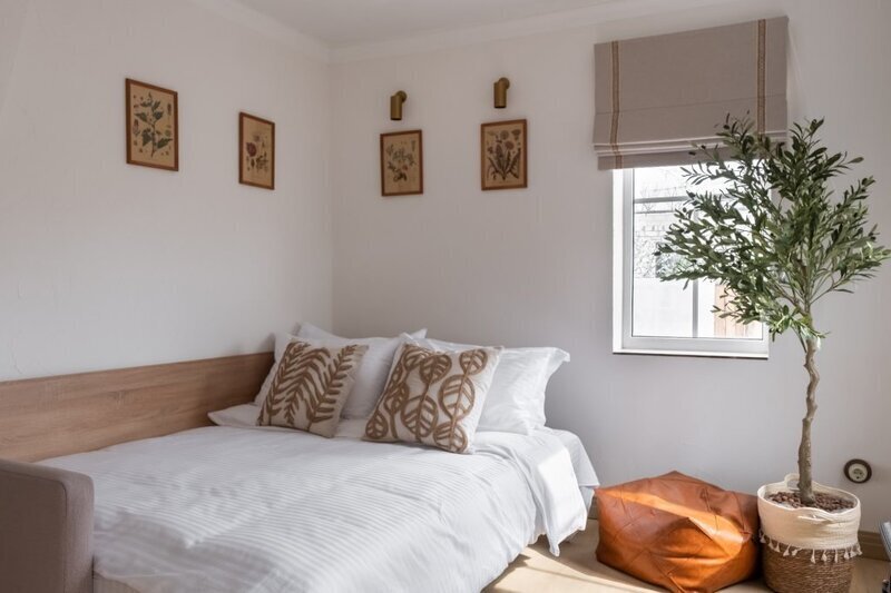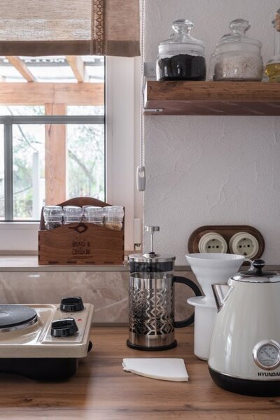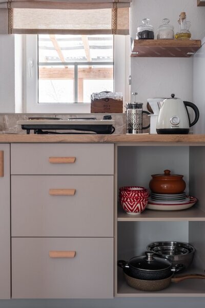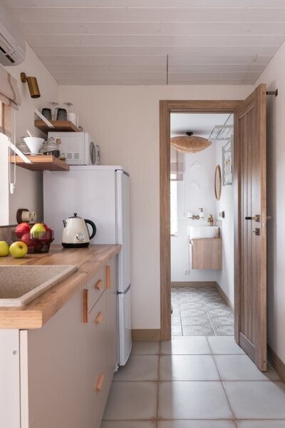 Кухня оснащена электрочайником, столовыми приборами, набором посуды, микроволновой печью, варочной панелью и холодильником. В пешей доступности находятся продуктовые магазины.