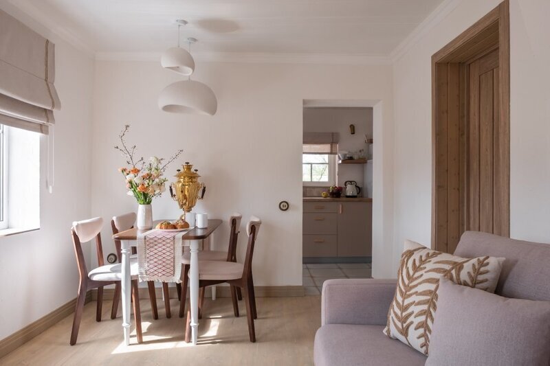 Уютный казачий домик с уникальным интерьером, в котором содержится все самое необходимое: бесплатный Wi-Fi, собственная ванная комната, кондиционер, фен и гардероб.