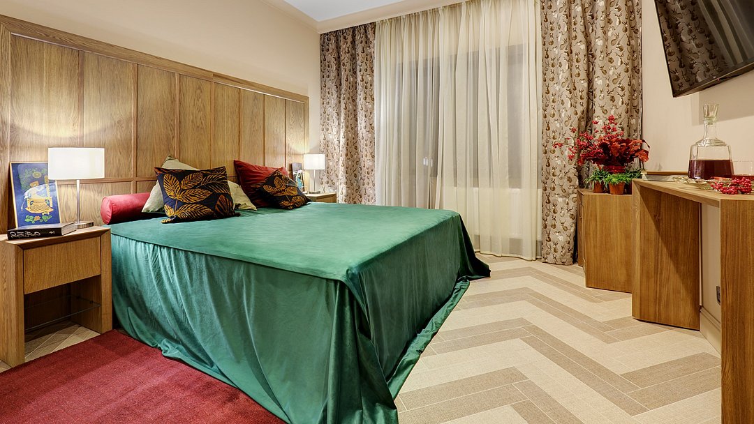 Улучшенный стандартный номер с дополнительной гостевой зоной. Отдельная просторная спальня уединит Вас еще более от забот. Из окон открываются великолепные виды на живописные пейзажи Усадьбы. Два основных места + одно дополнительное место Удобство и сервис: занавес - блек аут, Wifi, сейф. Уборка и смена полотенец (четыре полотенца) каждый день, постельного белья/один раз в три дня. Косметические принадлежности в ванной комнате. Халат, тапочки. Завтрак, гостевая парковка и безлимитный тренажерный зал входят в стоимость номера.Услуги и удобства
