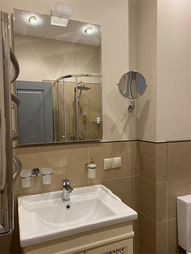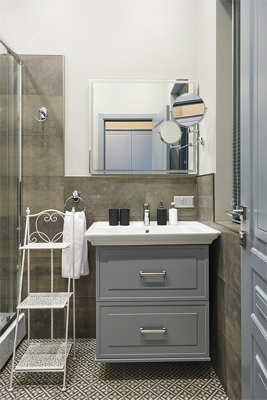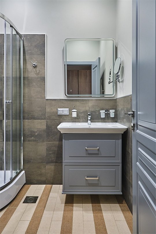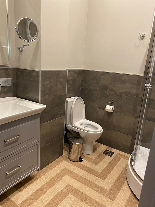 - с ванной или душевой кабиной