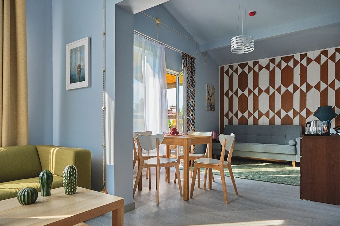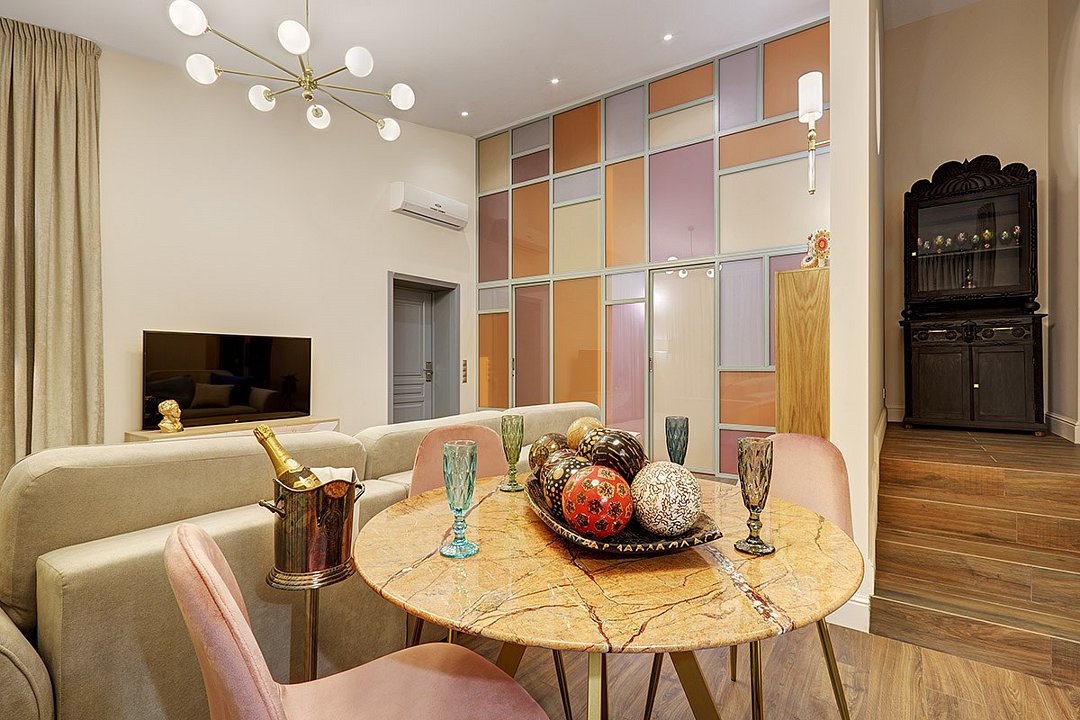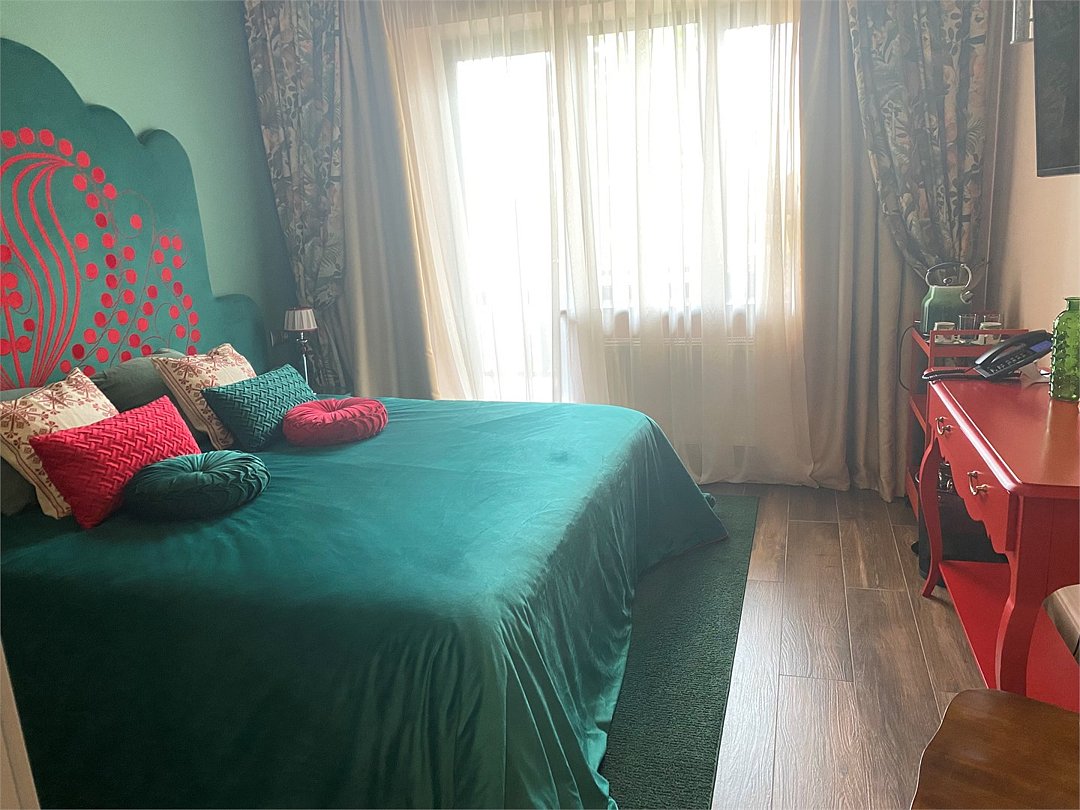 Роскошный дизайнерский номер с просторной гостевой зоной. Отдельная современная спальня. Из гостинной выход на панорамную террасу. Интересен для гостей, ценящих комфорт и престиж: для отдыха в компании друзей или в кругу семьи. Два сан узла в номере, а таке ванная и душевая. В гостинной есть возможность разместить двух дополнительных гостей на диване. Удобство и сервис: занавес - блек аут, Wifi, уборка и смена полотенец каждый день, постельного белья / раз в три дня. Косметические принадлежности в ванной комнате. Халат, тапочки. Завтрак, гостевая парковка входят в стоимость номера.Услуги и удобства