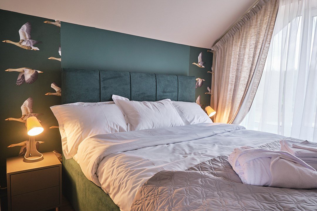 Коттедж ДЕЛЮКС (74 кв. м.) с двумя спальнями и гостинной. Размещение четырёхместное. В первой спальне большая двуспальная кровать, во второй спальне две раздельные кровати или же одна большая двуспальная кровать. Возможно два дополнительных места в гостинной на диване (оплачивается дополнительно) В коттеджах возможно проживание с собачками до 50 см в холке и до 15 кг (оплачивается дополнительно) Рядом с коттеджем расположена мангальная зона. Удобство и сервис: занавес - блек аут, Wifi, уборка и смена полотенец каждый день, постельного белья / раз в три дня. Косметические принадлежности в ванной комнате. Халат, тапочки.Услуги и удобства