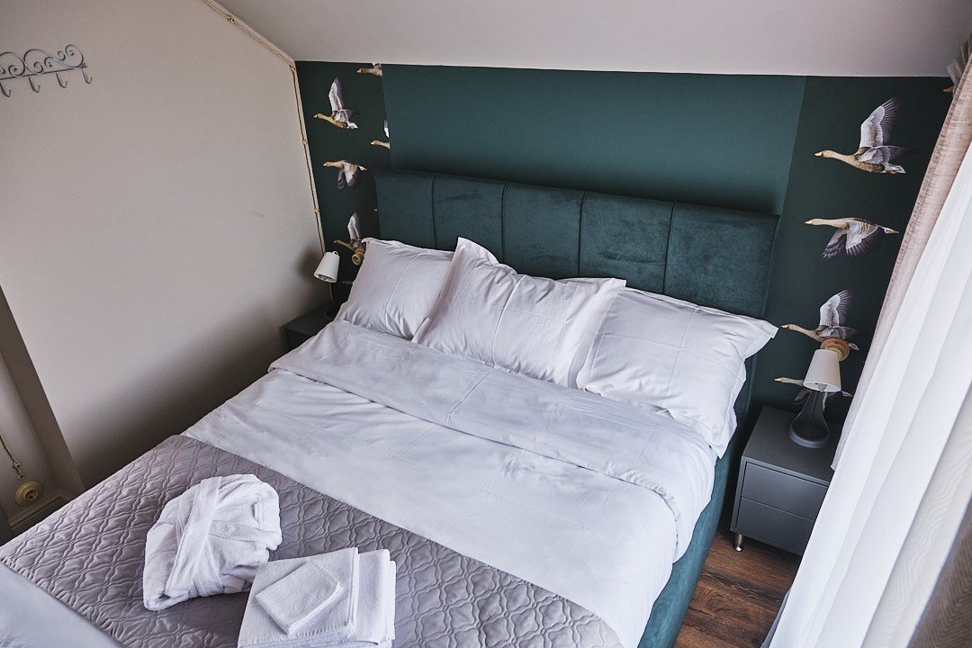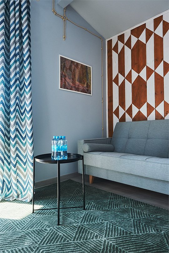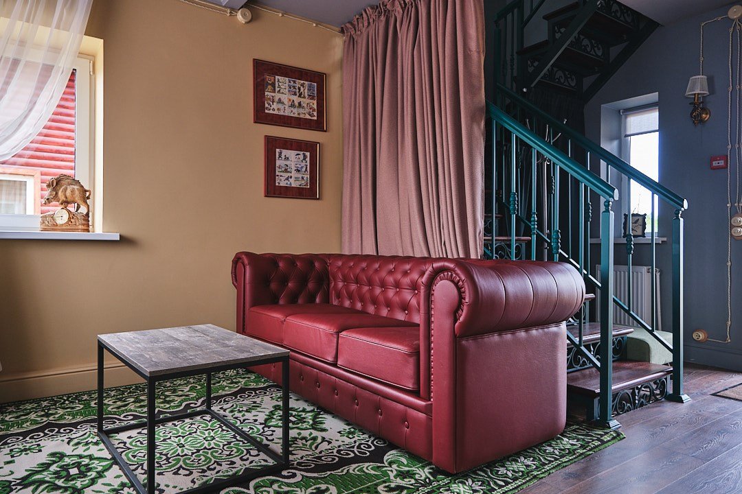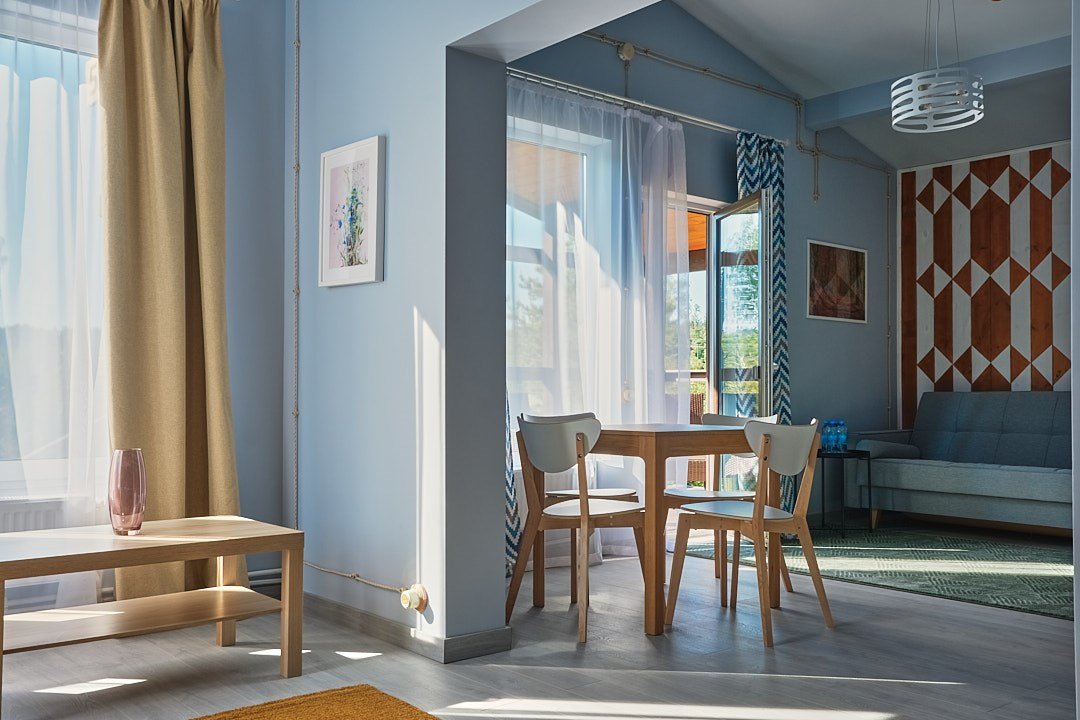 Просторные номера повышенной комфортности позволяют еще больше окунуться в атмосферу отдыха и безмятежности. Гостей ждет просторная зона отдыха с мягким диваном, где можно после приятных неспешных прогулок по территории Усадьбы. Из панорамных окон открываются великолепные виды на живописные пейзажи усадьбы. Удобство и сервис: занавес - блек аут, Wifi, уборка и смена полотенец каждый день, постельного белья/один раз в три дня. Косметические принадлежности в ванной комнате. Халат, тапочки. Завтрак, гостевая парковка входят в стоимость номера. Двухместное размещение, а также возможно дополнительно разместить двоих гостей в гостинной на раскладном диване. Номер 101 находится на первом этаже. Номер 201 находится на втором этаже.Услуги и удобства