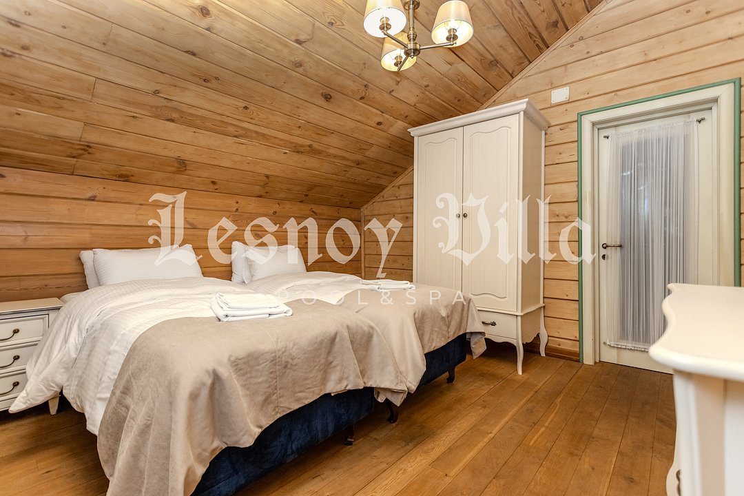 Двухэтажный премиум коттедж Lesnoy Villa с шестью спальнями (14 спальных мест). И четыре современных двухместных бунгало, оснащённые всем необходимым для комфортного проживания (кондиционер, ТВ, сан узел).
