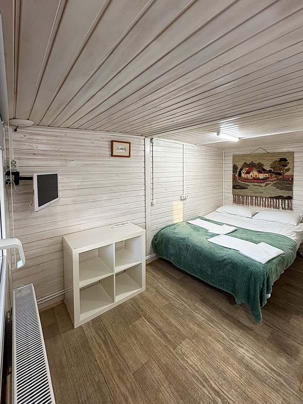 Стандартный двухместный улучшенный номер с теплыми полами. Идеально подходит для романтического отдыха или комфортного пребывания на деловой поездке, обеспечивая все необходимые условия. В номере есть посуда, микроволновая печь, мини-холодильник, чайник, телевизор.