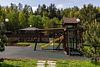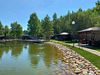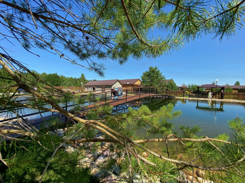 Частный дом расположен на территории 1 га, окружён лесом. Есть собственный пруд для рыбалки, баня, парковка и детская площадка.