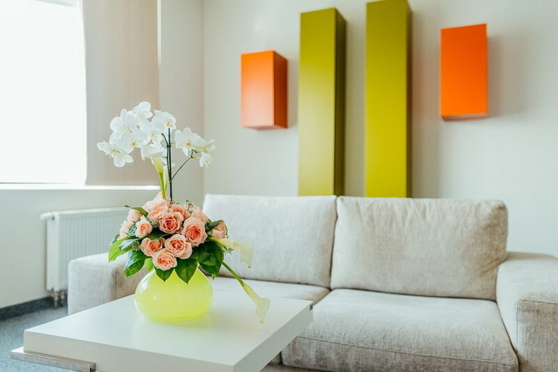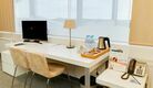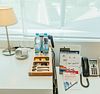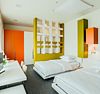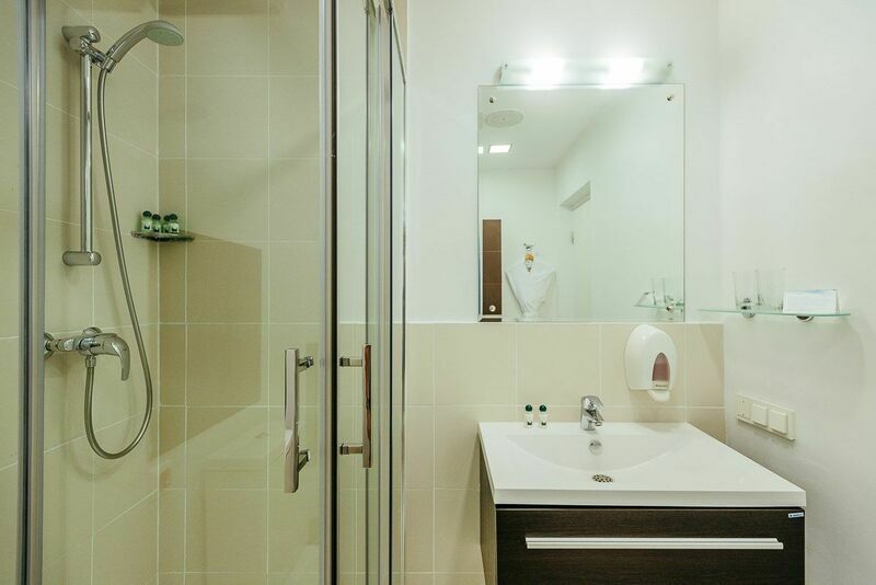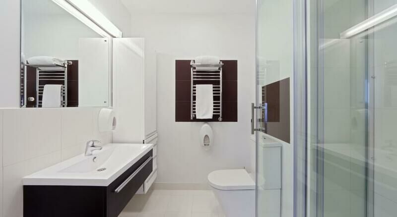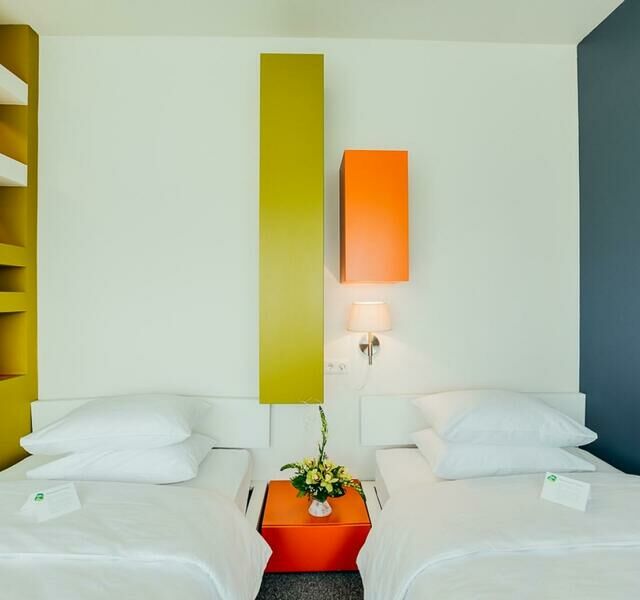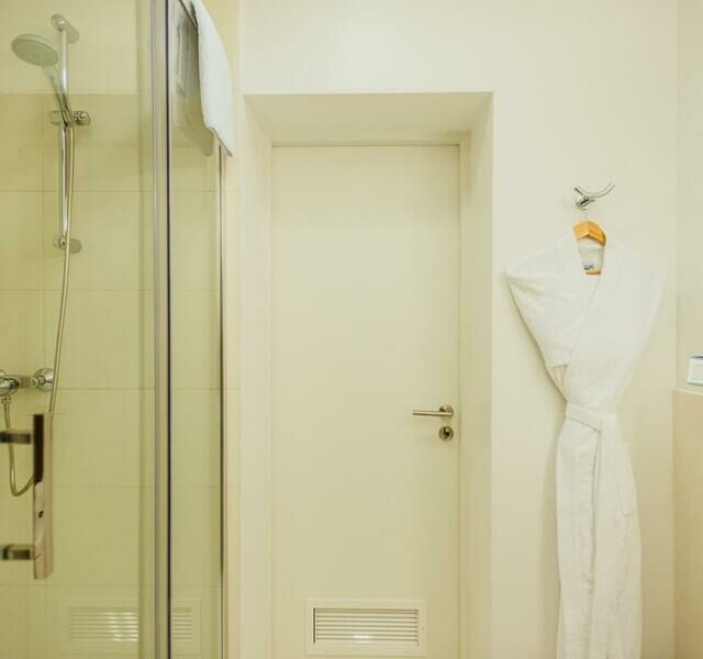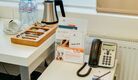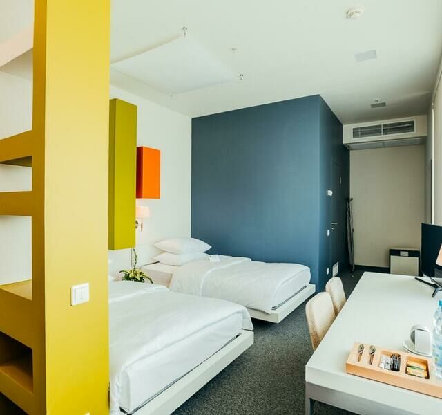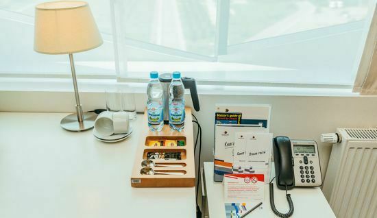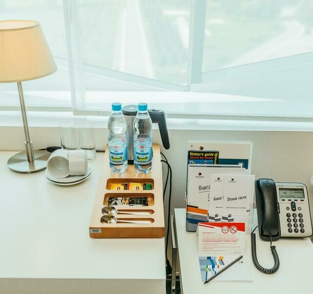 Номера отеля оформлены строгими геометрическими линиями и имеют общую цветовую гамму и отделку. В каждом номере оформлены места для работы. Гости могут выпить чай или кофе - все необходимое есть в номере. Ванная оборудована феном.