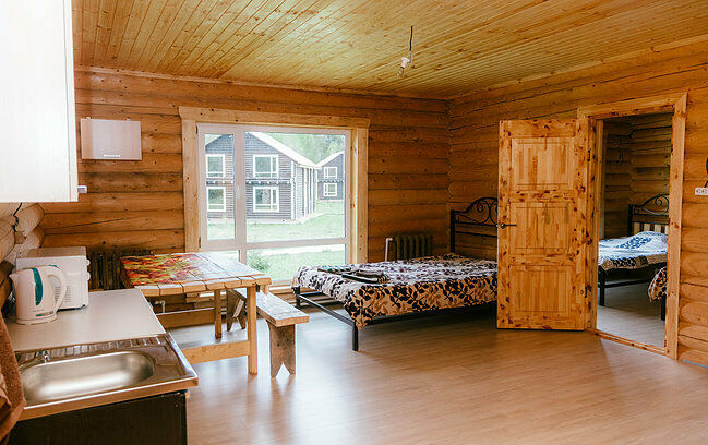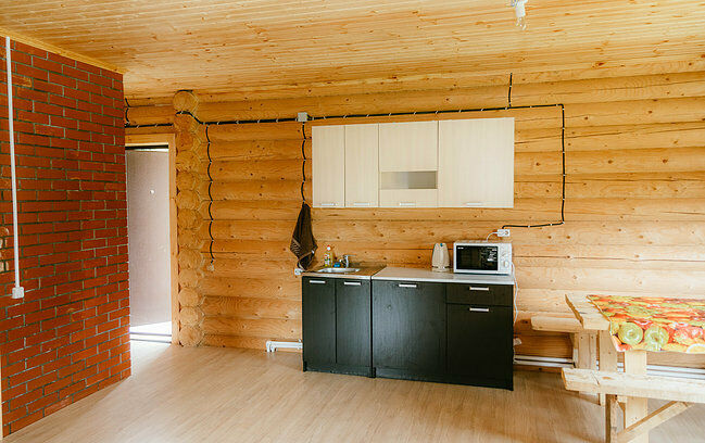 Двухэтажный дом - Большая гостинная - Микроволновка - Холодильник - Чайник - Столовые приборы - Телевизор - Небольшая кухня - Душевая с горячей и холодной водой - Санузел - Собственная сауна - Веранда с видом на пруд и лес - Крытая беседка с мангалом - Решётки, шампура