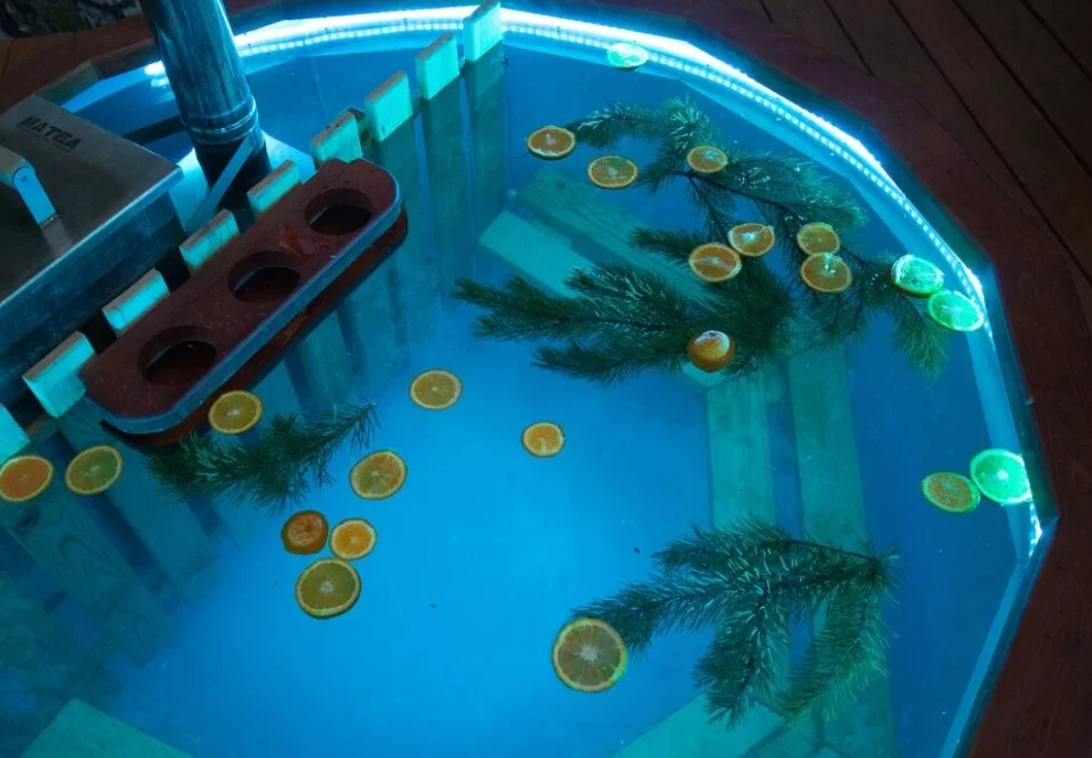 На веранде каждого дома находится японская купель-фурако - чан с тёплой водой, подогреваемой на дровяной печке. Водные процедуры в фурако способствуют снятию стресса и релаксации всего организма, сравнимой с сеансом массажа.