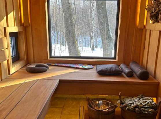 Уникальная русская баня, с панорамным видом на лес.