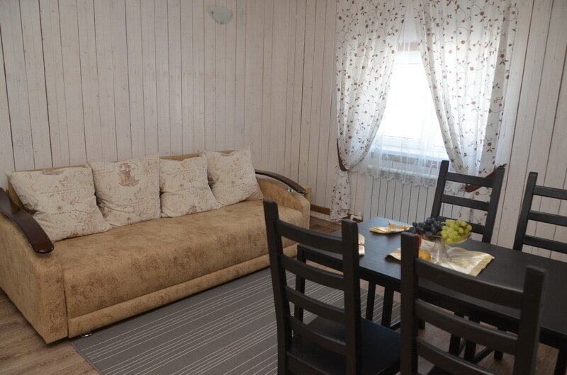 2 раскладных дивана на 4 места, с/у (летний душ на территории),спутниковое ТВ, посуда, мебель, чайник