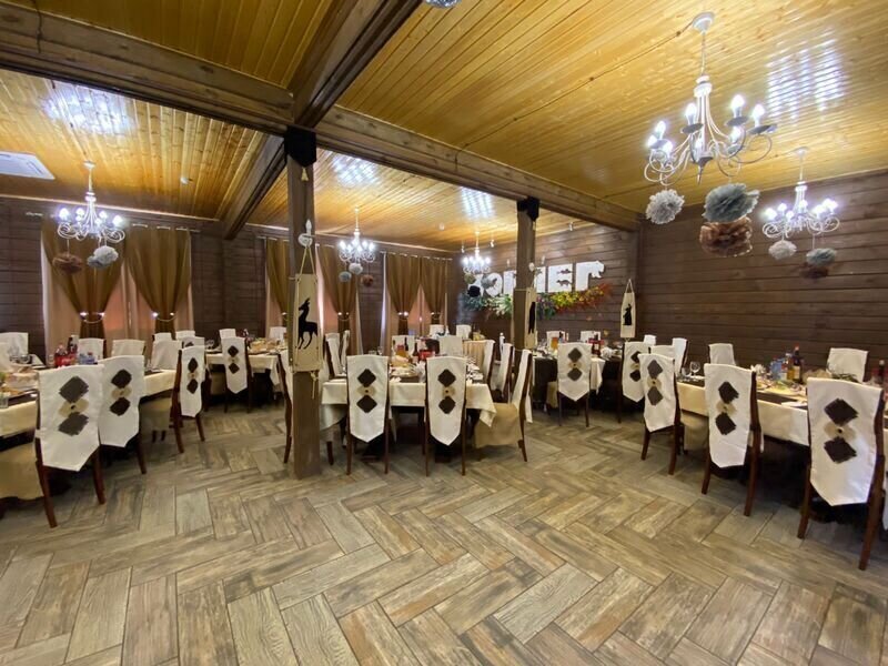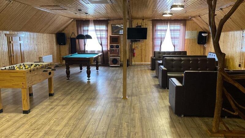 На территории базы есть мини-зоопарк, конференц-зал, русские бани на дровах, бильярд, караоке, беседки, мангалы, качели, зоны для костров, сезонный бассейн и спортивная площадка. Гости смогут арендовать квадроциклы, велосипеды, лыжи, ватрушки или рыболовные снасти. Для детей предусмотрена детская площадка и игровая комната.
