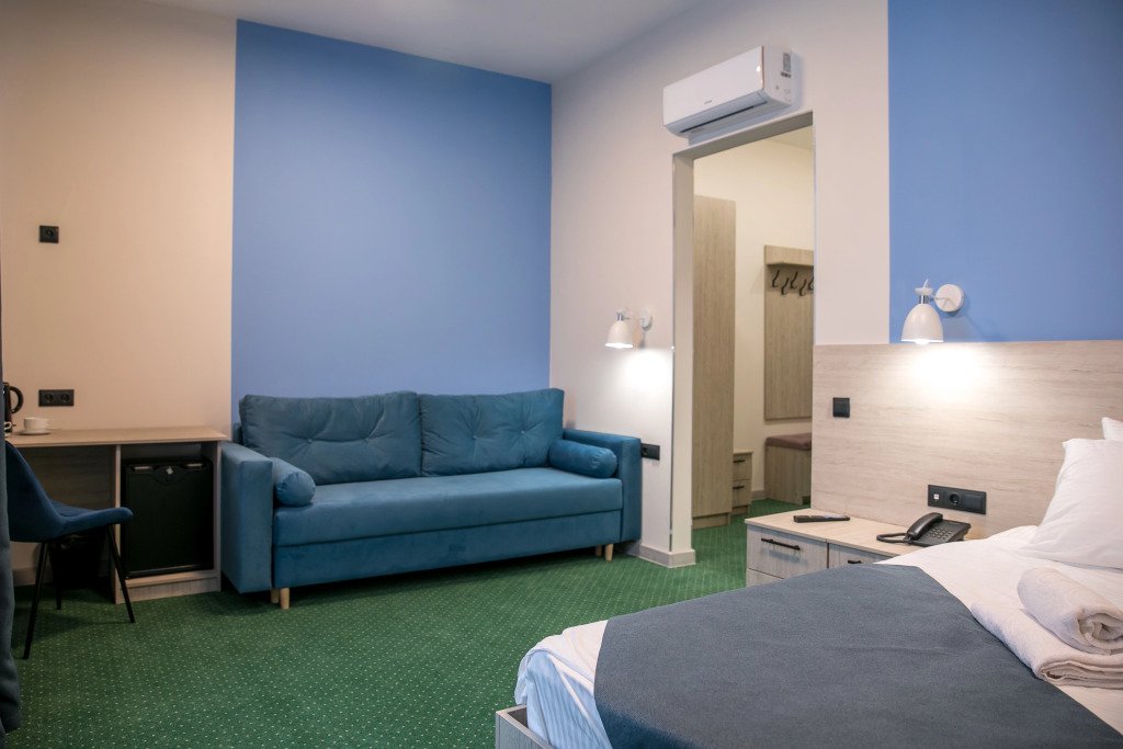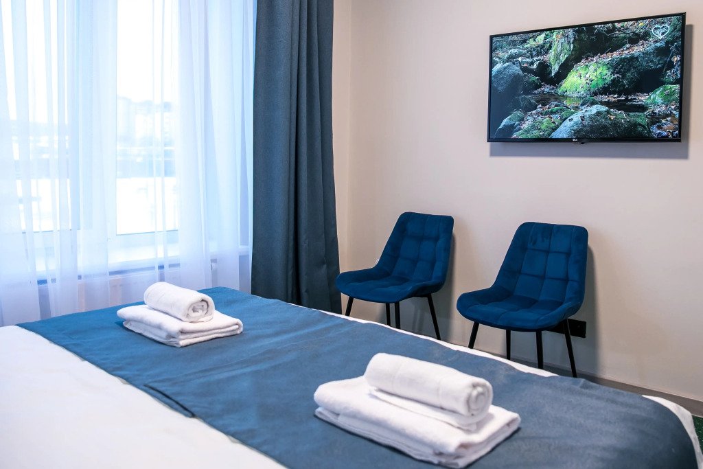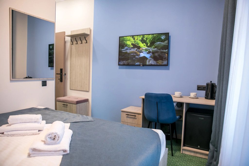 Чтобы вы могли отдохнуть после долгого дня, в номере есть телевизор и халат. Оснащение зависит от выбранной категории номера.