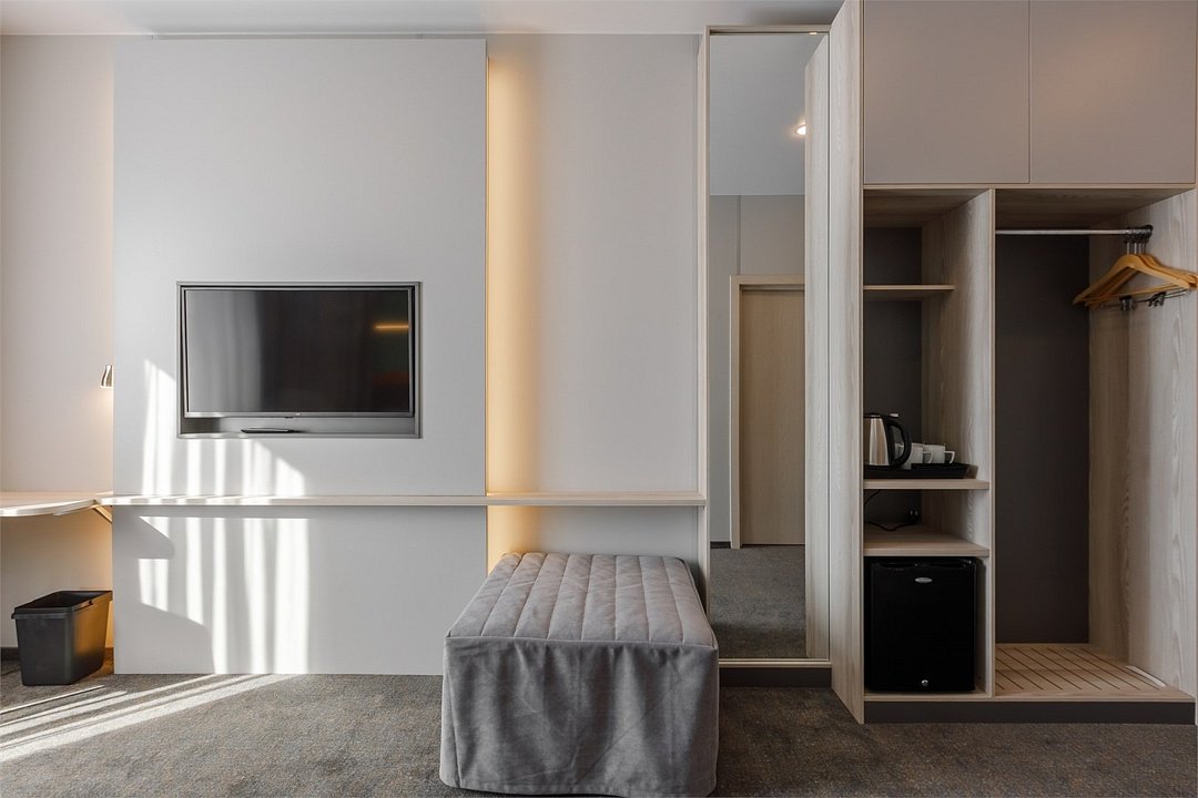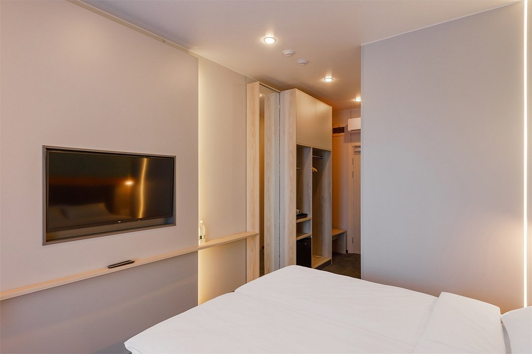 Номер площадью 18 м2 с 1 двуспальной кроватью с анатомическим матрасом рассчитан на 2 взрослых и 1 ребенка. Для детей до 5 лет включительно проживание в одном номере со взрослыми предоставляется бесплатно на отдельном спальном месте. По запросу может быть предоставлена детская кроватка (для детей от 0 до 3 лет). В номере: Кровать с ортопедическим матрасом, телевизор, мини-бар, кондиционер, телефон. В собственной ванной комнате есть все необходимое для путешественников: набор полотенец, туалетно-косметические принадлежности, фен, тапочки. Для комфортного отдыха в номерах используются светонепроницаемые шторы и улучшенная звукоизоляция. Доступ к высокоскоростному интернету и рабочий уголок позволяют оперативно и комфортно решать рабочие вопросы. Размещение с домашними животными возможно за дополнительную плату только по предварительному согласованию с отелем. Собаки весом до 5 кг, кошки. Не более 1 питомца в номере. Стоимость размещения домашних животных - 1000 руб в сутки, депозит - 5000 руб.Услуги и удобства