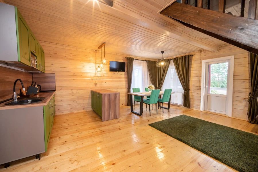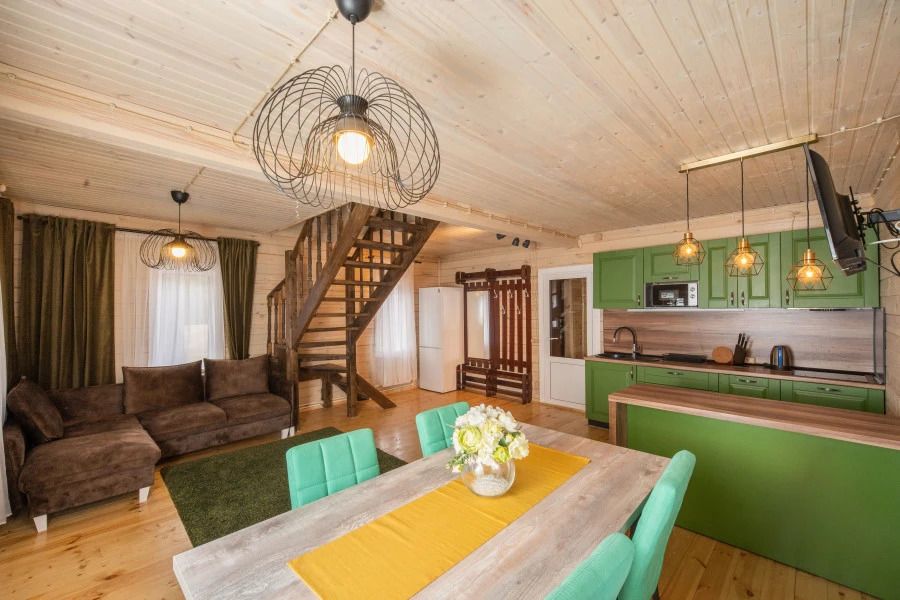 В коттеджных домиках удобно будет расположиться большой семье или компании, так как номера комфортно обустроены, и оборудованы кухонным блоком и необходимым инвентарем.