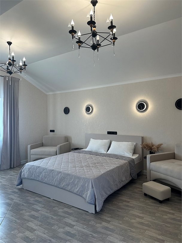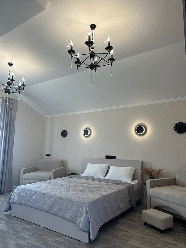 два телевизора, Wi-Fi, холодильник, кондиционер, фен, утюг, водонагреватель, банные полотенца, двуспальная кровать, односпальная кровать, гладильная доска, тумбы, стулья, шкаф для одежды, журнальный столик, зеркало, комод, две комнаты, набор посуды, обслуживание номеров, чайник, унитаз, раковина, косметическое зеркало, отопление, душ, вид на море, две спальни, вид во двор, высокие потолки, стаканы, панорамные окна, цифровое тв, диван-кровать, раскладной диван, телевизор с плоским экраном, номер для некурящих, общественный бассейн, межкомнатная дверь, уборка номера, услуги прачечной (платно), вешалки-плечики, мыло, без питомцевВ гостиничном номере