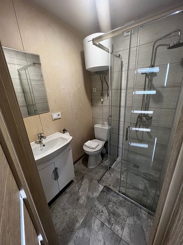 Номер площадью от 20 м² с отдельным входом и террасой 27 м², на первой линии моря. Оснащен двумя односпальными кроватями 160х200, раскладным диваном 80х200, теплыми полами, шкафом для одежды с зеркалом, ЖК-телевизором, современной душевой кабиной и туалетом, постельными принадлежностями и махровыми изделиями, мини-холодильником и чайником.