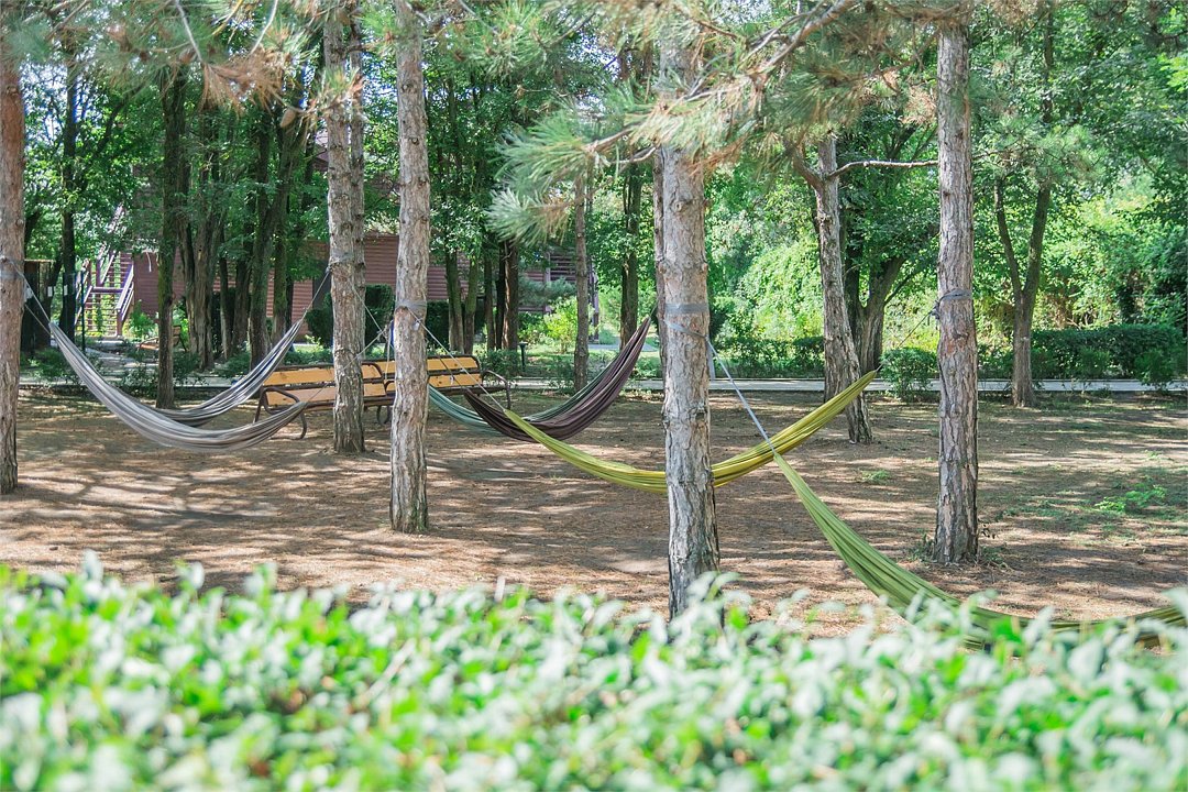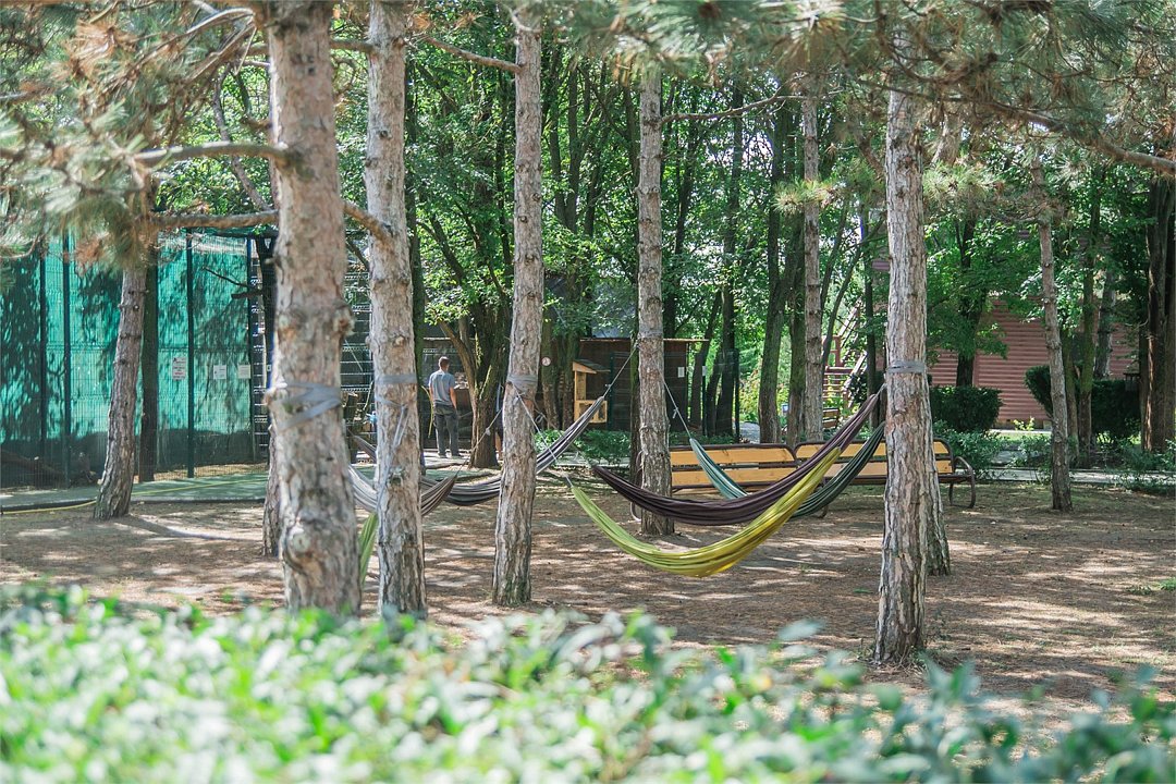 На территории есть минизоопарк, детские площадки, зоны отдыха и релакса-это гамаки, шезлонги и бассейны, тропа здоровья, беседки в тени деревьев.
