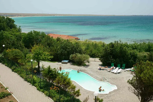 Территория пансионата, это великолепный цветущий парк и собственный благоустроенный песчаный пляж протяженностью 600 метров. Жилой фонд составляют номера различного уровня удобств, с возможностью размещения как в корпусах так и в коттеджных городках или апартаментах на берегу моря.
