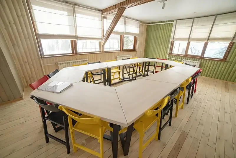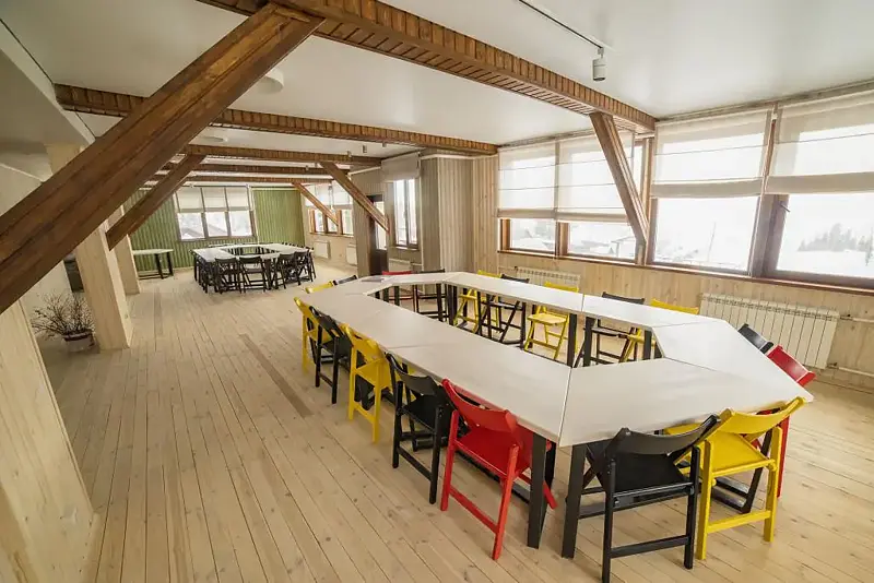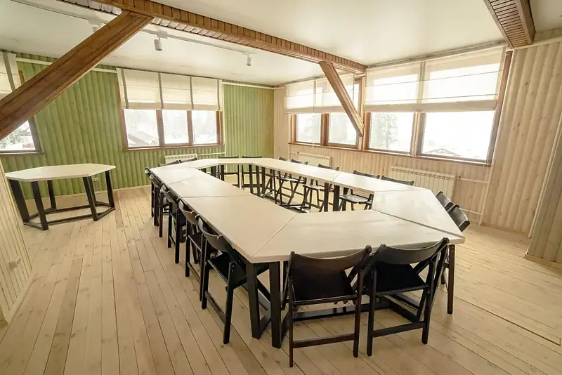 База отдыха «Ергаки» предлагает арендовать современный и многофункциональный конференц-зал, расположенный на втором этаже отеля «Freeride». Вместимость зала составляет 50-70 человек, что делает его идеальным местом для проведения деловых встреч, корпоративных мероприятий, презентаций продукции и обучения персонала. Оборудованный необходимой мебелью и техникой, конференц-зал также располагает собственным санузлом для удобства гостей.