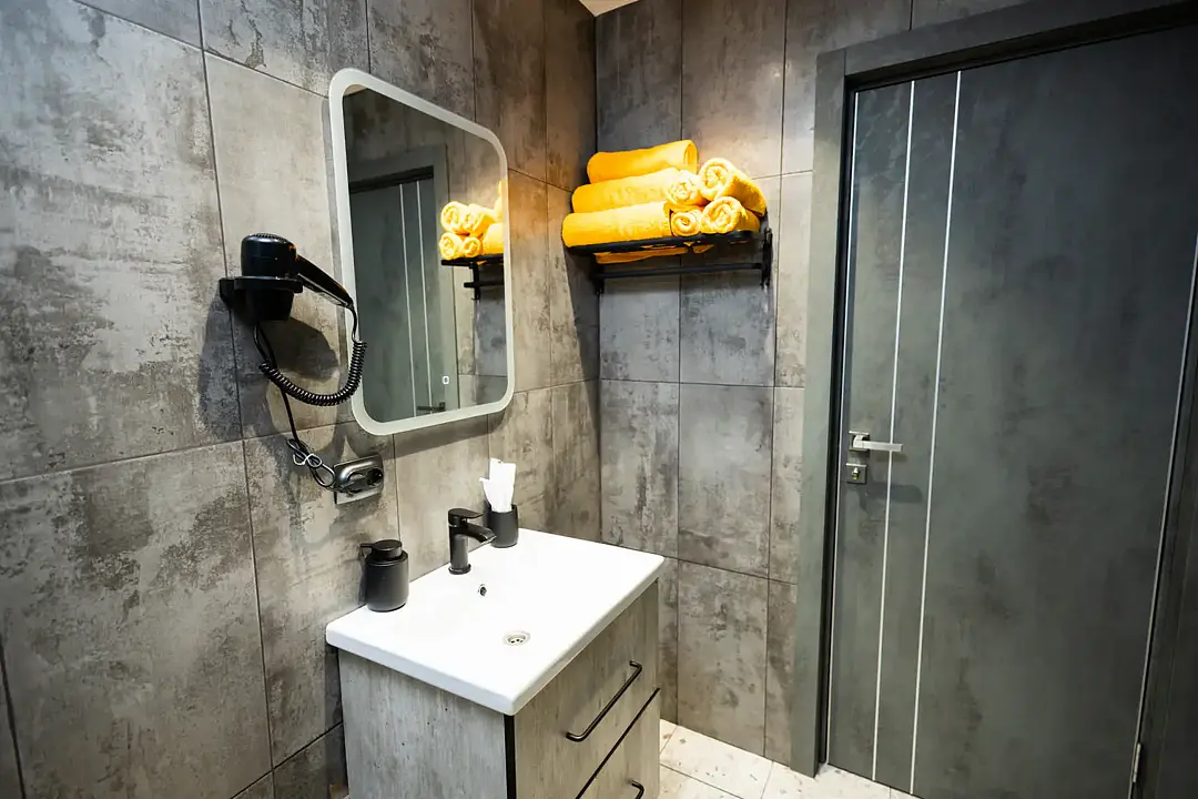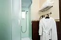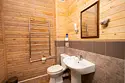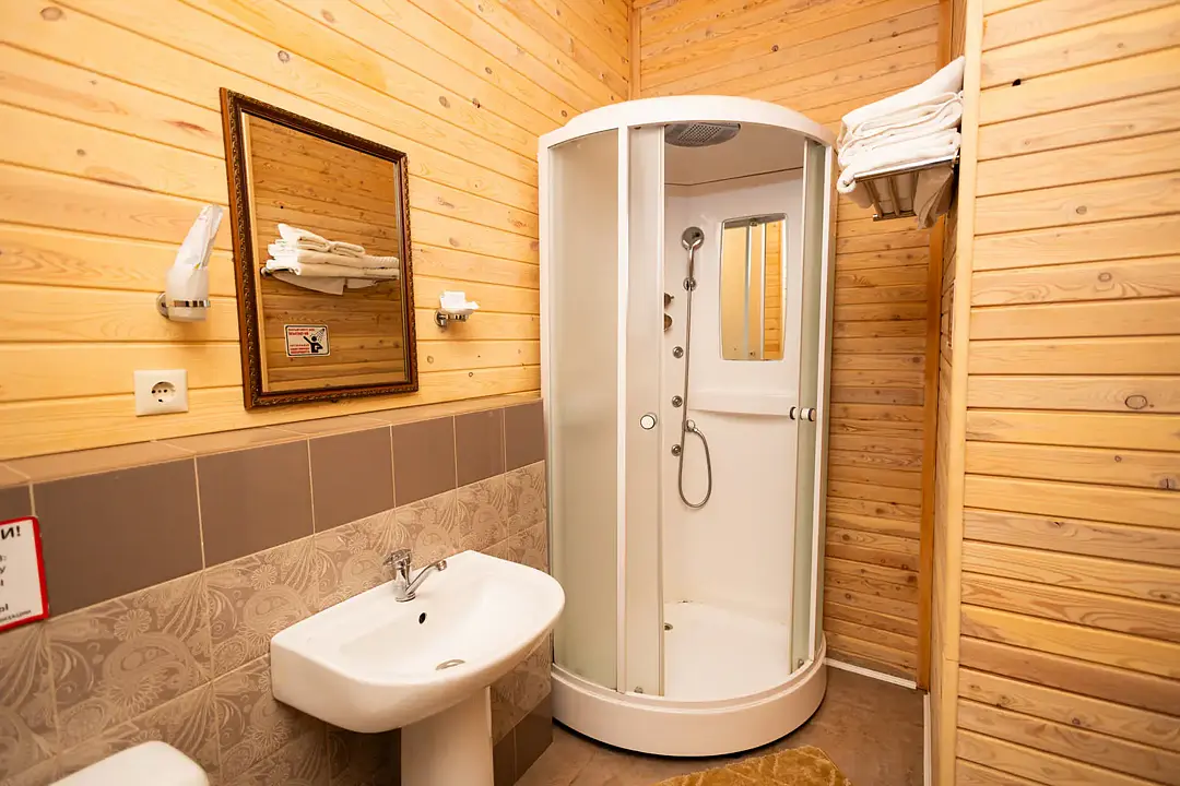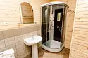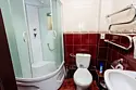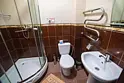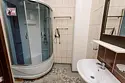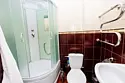 В ванной комнате — душевая кабина, санузел, комплект полотенец, гостиничная парфюмерия (мыло, шампунь, паста, зубная щетка, гель для душа).