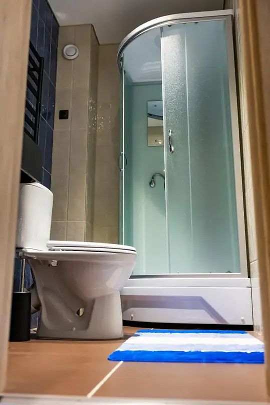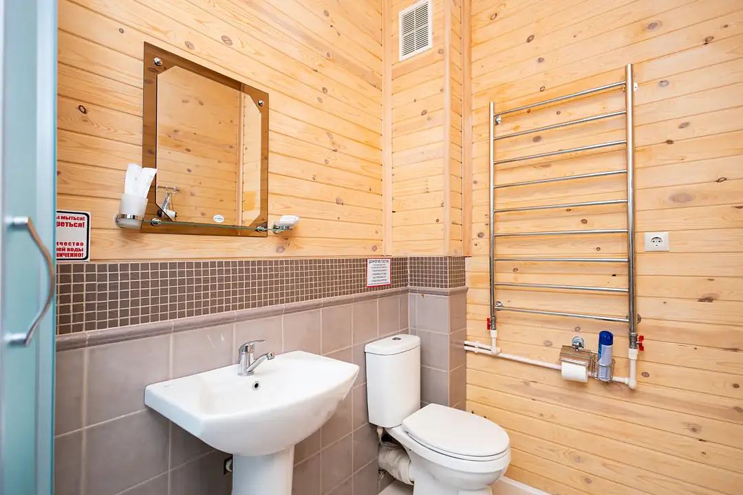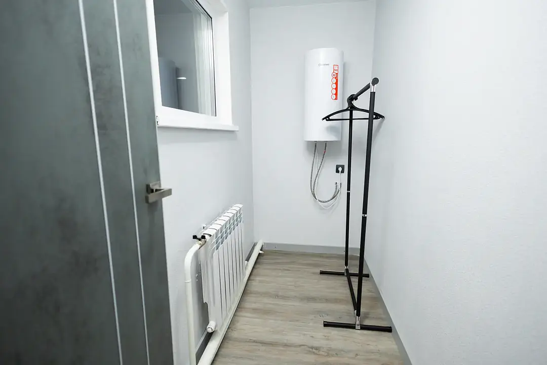 Корпус оснащен центральным отоплением и двумя санузлами (душ, умывальник, туалет, сушилка).
