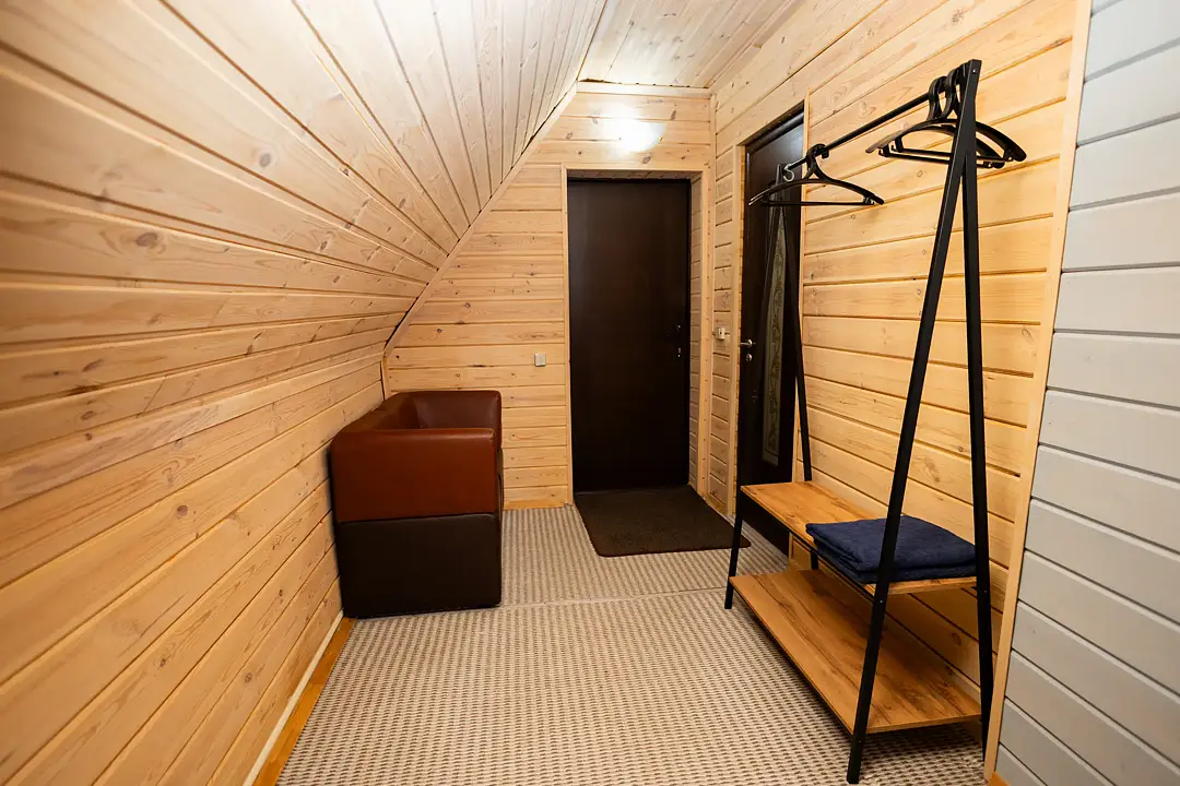 Описание корпуса: двухэтажный деревянный корпус рассчитан на проживание двадцати двух человек. Забронировать можно как весь корпус, так и отдельные номера. Корпус оснащен центральным отоплением.