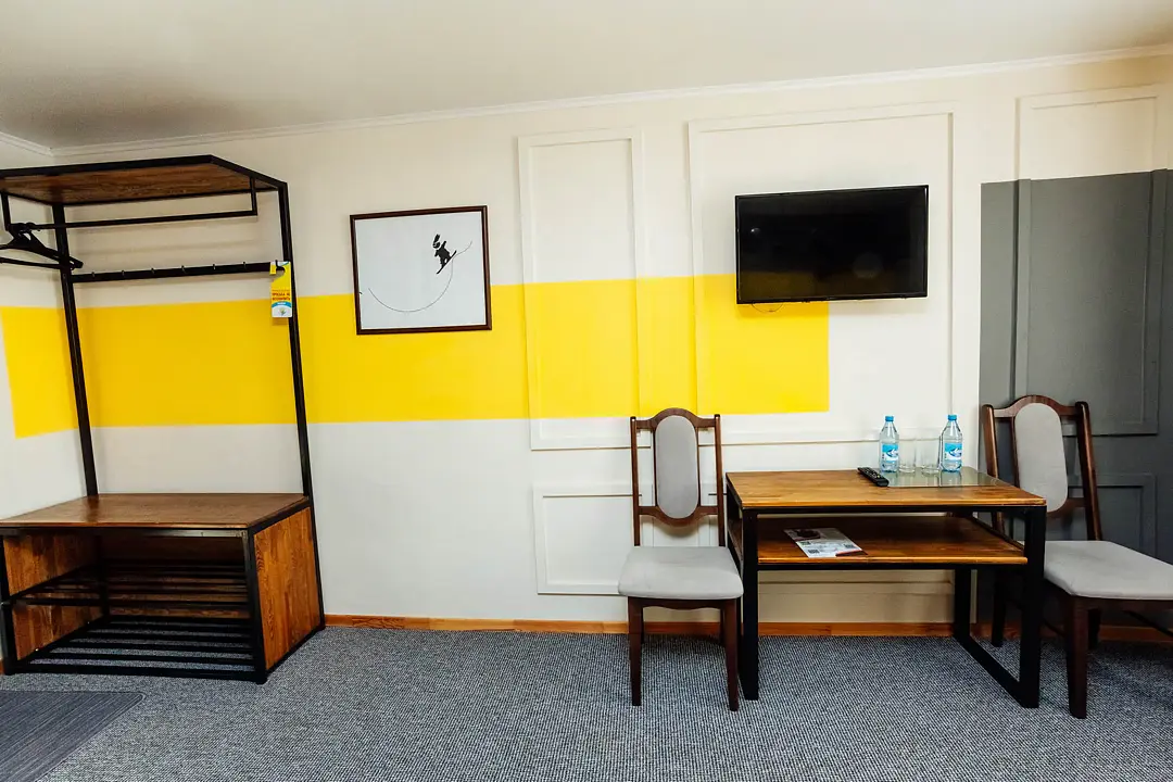 Двухместные номера в гостинице «FreeRide» оснащены двумя спальными местами (одна двуспальная кровать или две односпальные кровати), прикроватными тумбами, столом, стульями, телевизором, прихожей.