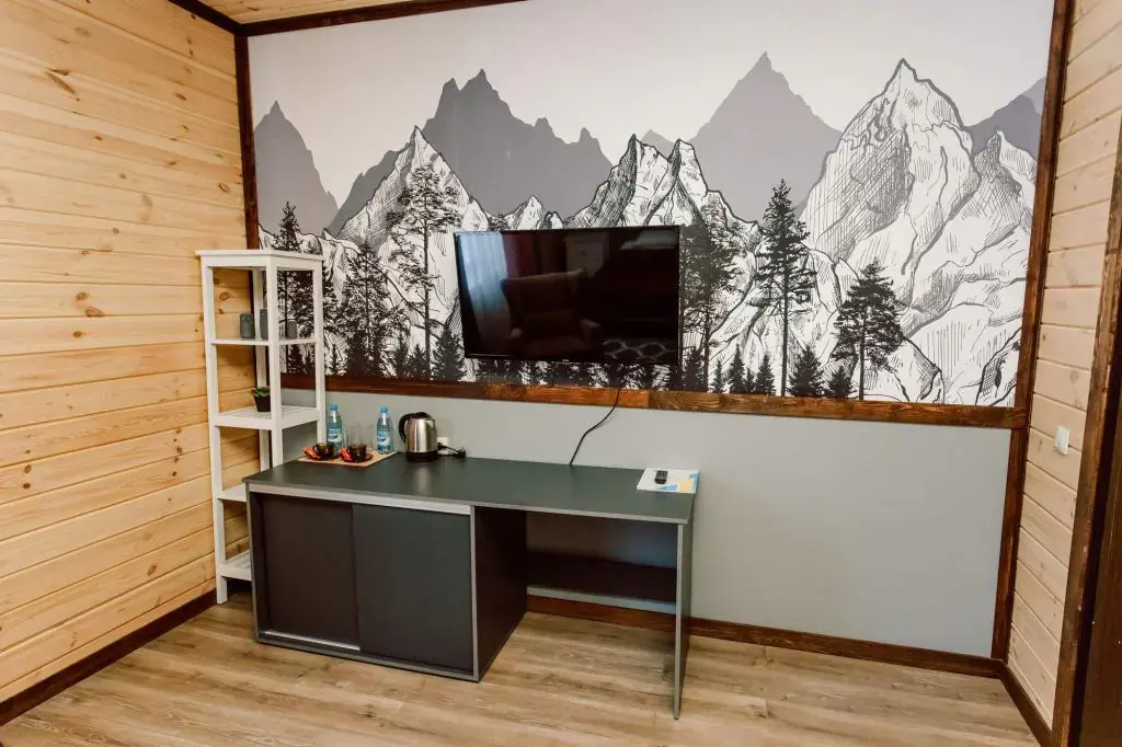 Двухместные номера в гостинице «Backcountry» расположены на втором этаже отеля. Оснащены двухспальной кроватью, прикроватными тумбами, столом, стульями, телевизором, мини-холодильником, чайником, прихожей.
