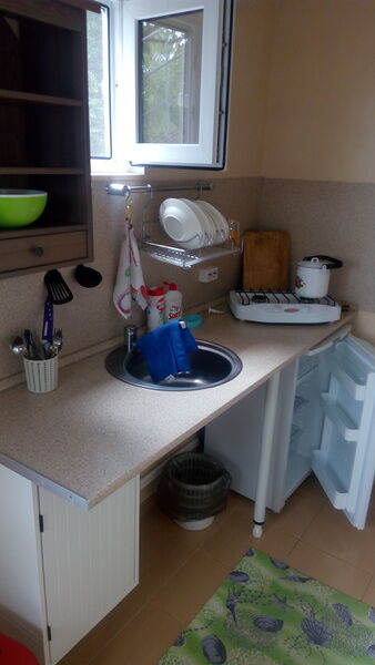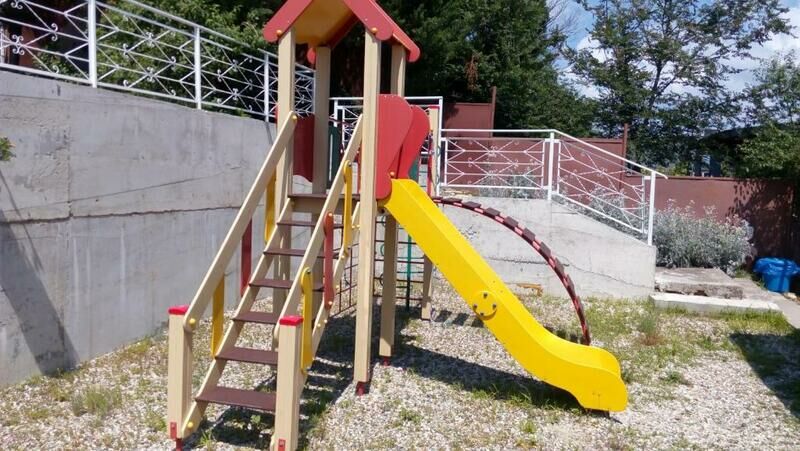На территории гостевого дома есть зона для барбекю и парковка для автомобилей. Для детей оборудована игровая площадка. До пляжа можно добраться по тенистой дорожке с лестницей, длина которой около 500 метров. Пляж галечный и идеально подходит для спокойного отдыха у воды. В поселке расположены столовые, магазины, сувенирные лавки и экскурсионные бюро, предлагающие разнообразные развлечения для гостей.