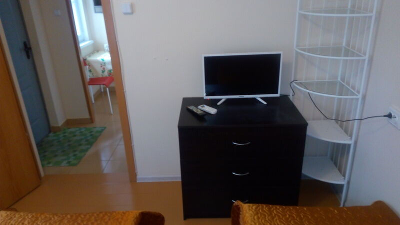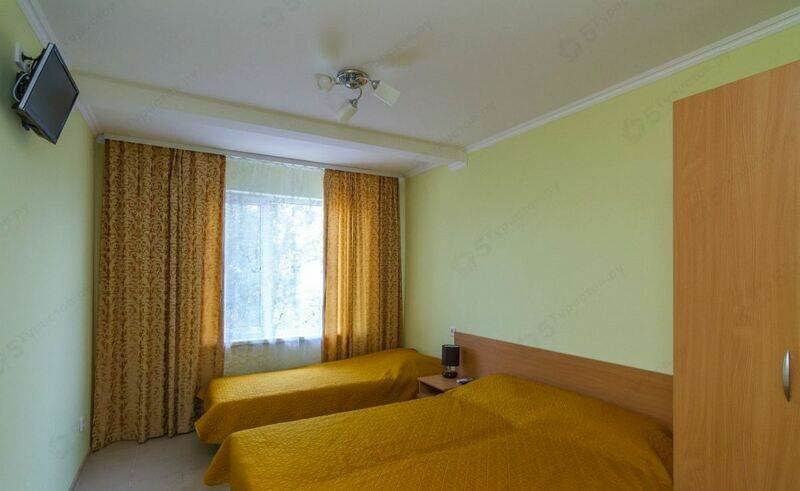 Двуспальная кровать и односпальная кровать, тумбочки прикроватные, шкаф, кондиционер, телевизор, санузел (душ+туалет)
