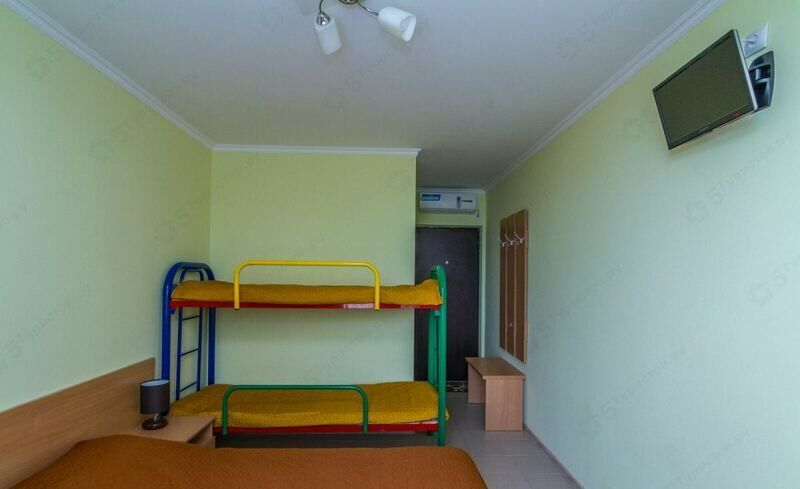 Двуспальная кровать, двухъярусная кровать, тумбочки прикроватные, шкаф, кондиционер, телевизор, санузел (душ+туалет)