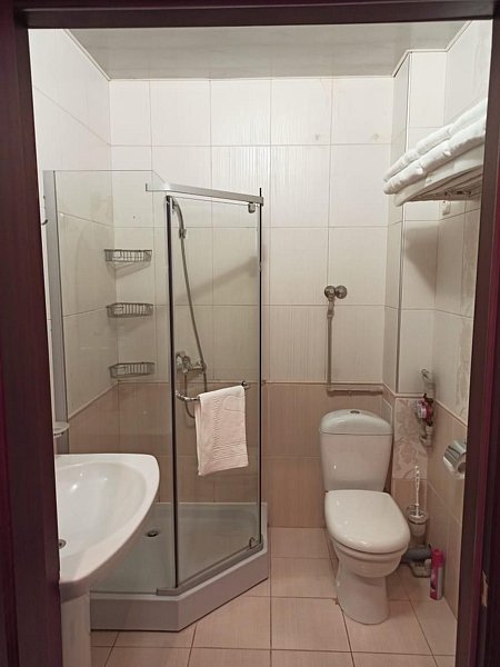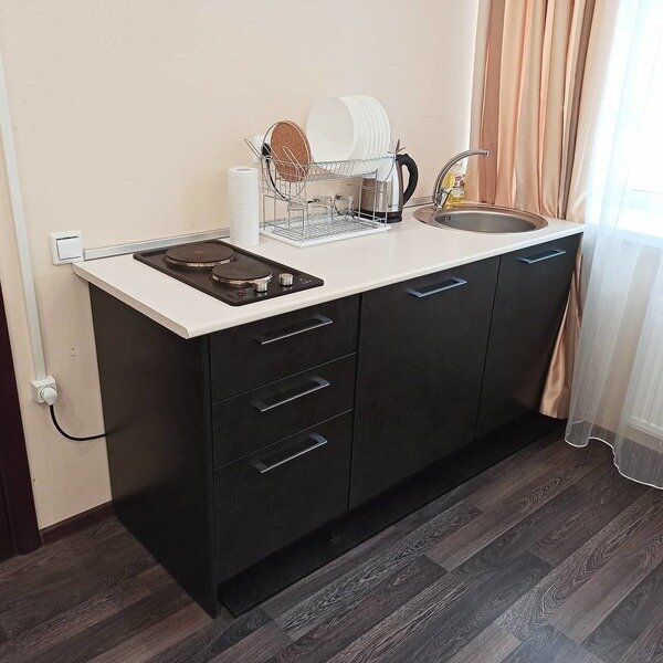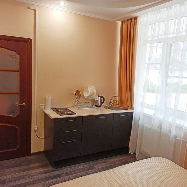 Две раздельные комнаты, в одной из которых оборудована мини-кухня оснащенная всей необходимой посудой и бытовой техникой. Санузел с душевой кабиной и феном. В комнатах установлены ТВ и кондиционеры. Так же есть утюг и гладильные принадлежности.