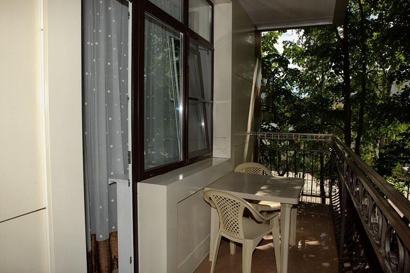 Комнаты смежные, из каждой выход на большой балкон. В гостиной установлена встроенная мини-кухня с необходимым набором посуды и бытовой техникой. Комнаты оснащены кондиционерами и ТВ.