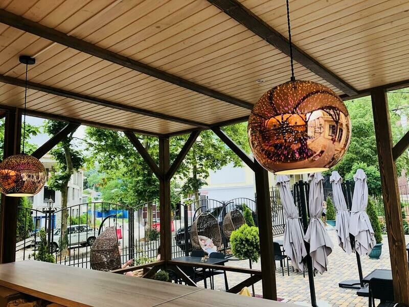 Питание в гостинице не предусмотрено, но работает бар организована зона отдыха со стоиками и зона барбекю. К отдыхающим беспроводной интернет и охраняемая автостоянка.