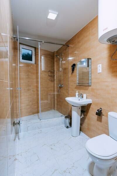 Удобства на пляже: душ, санузелПесчано-галечный пляж